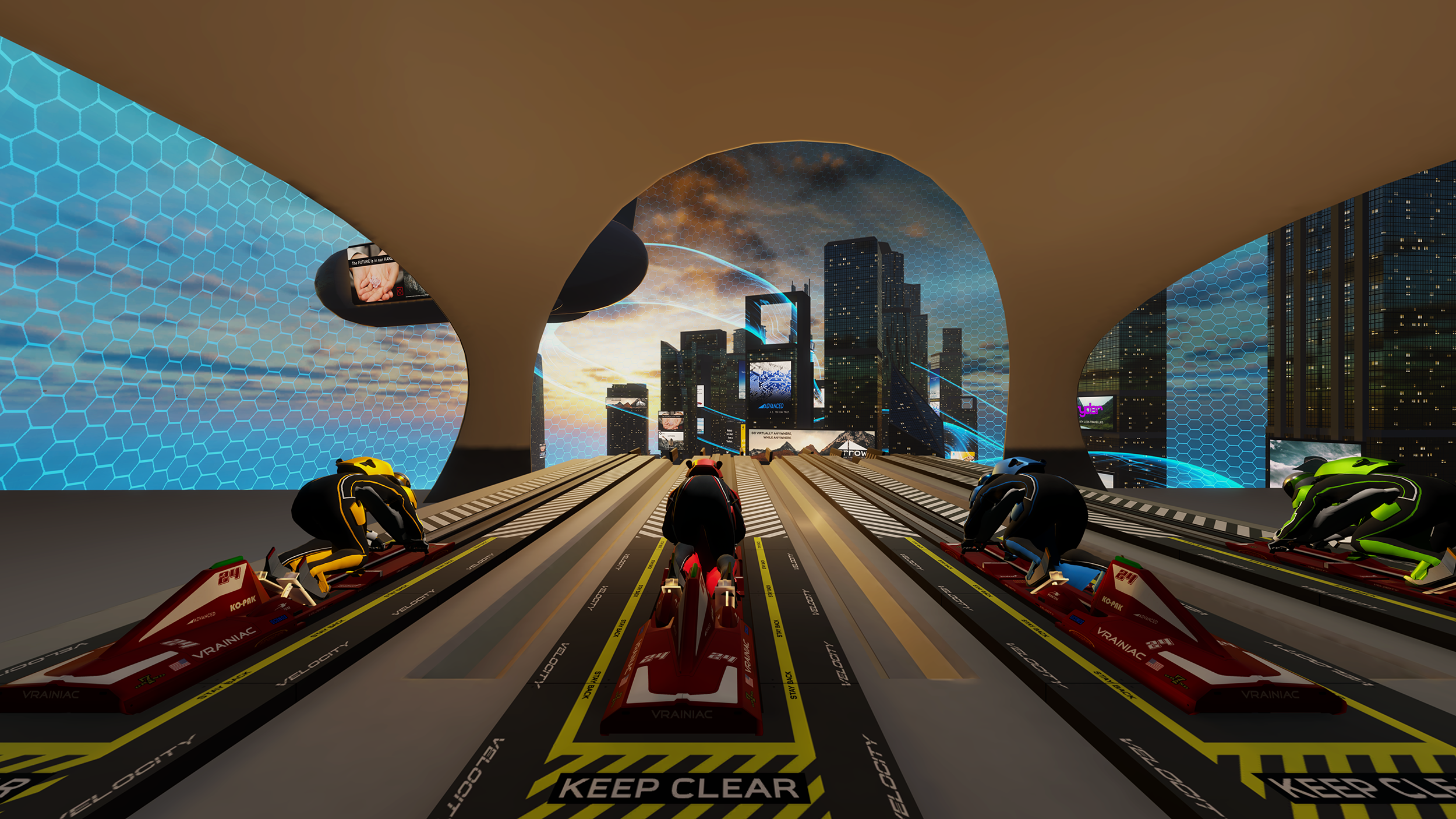 2. The best immersive VR game that reproduces 5km x 5km of landmark area of famous cities of the world and races on various difficulty air tunnel tracks in the background of skyscrapers.