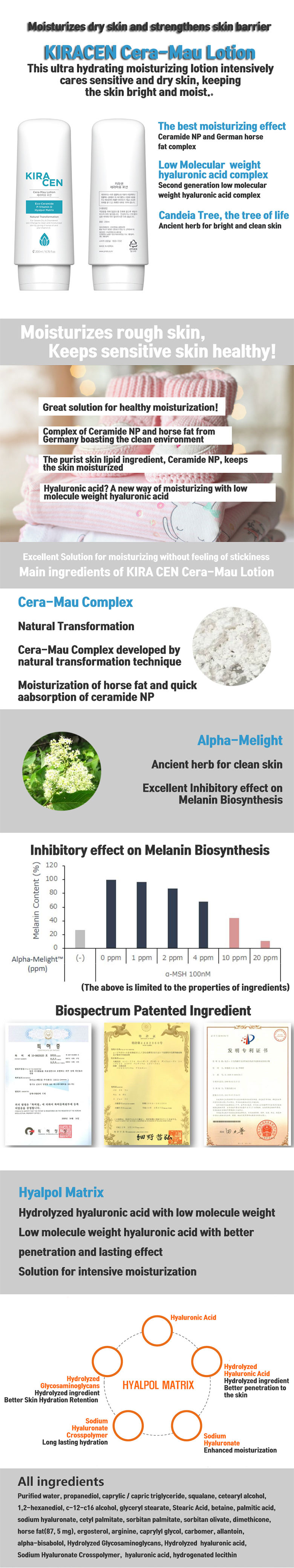 KIRACEN peptide, horse oil, skin care body lotion is formulated: