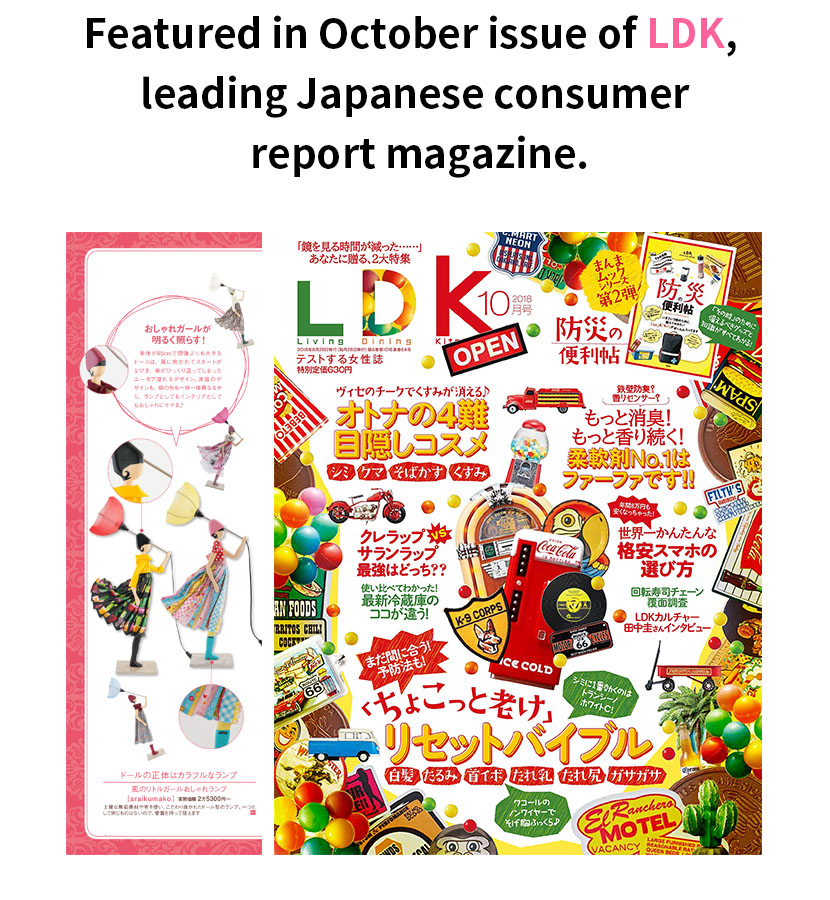 This lamp is selected “Editor’s Choice” from the largest handmade fair in Japan in April 2018, and it is, also, selected as Best 100 designs from the 2nd largest handmade fair in Japan in July 2018.