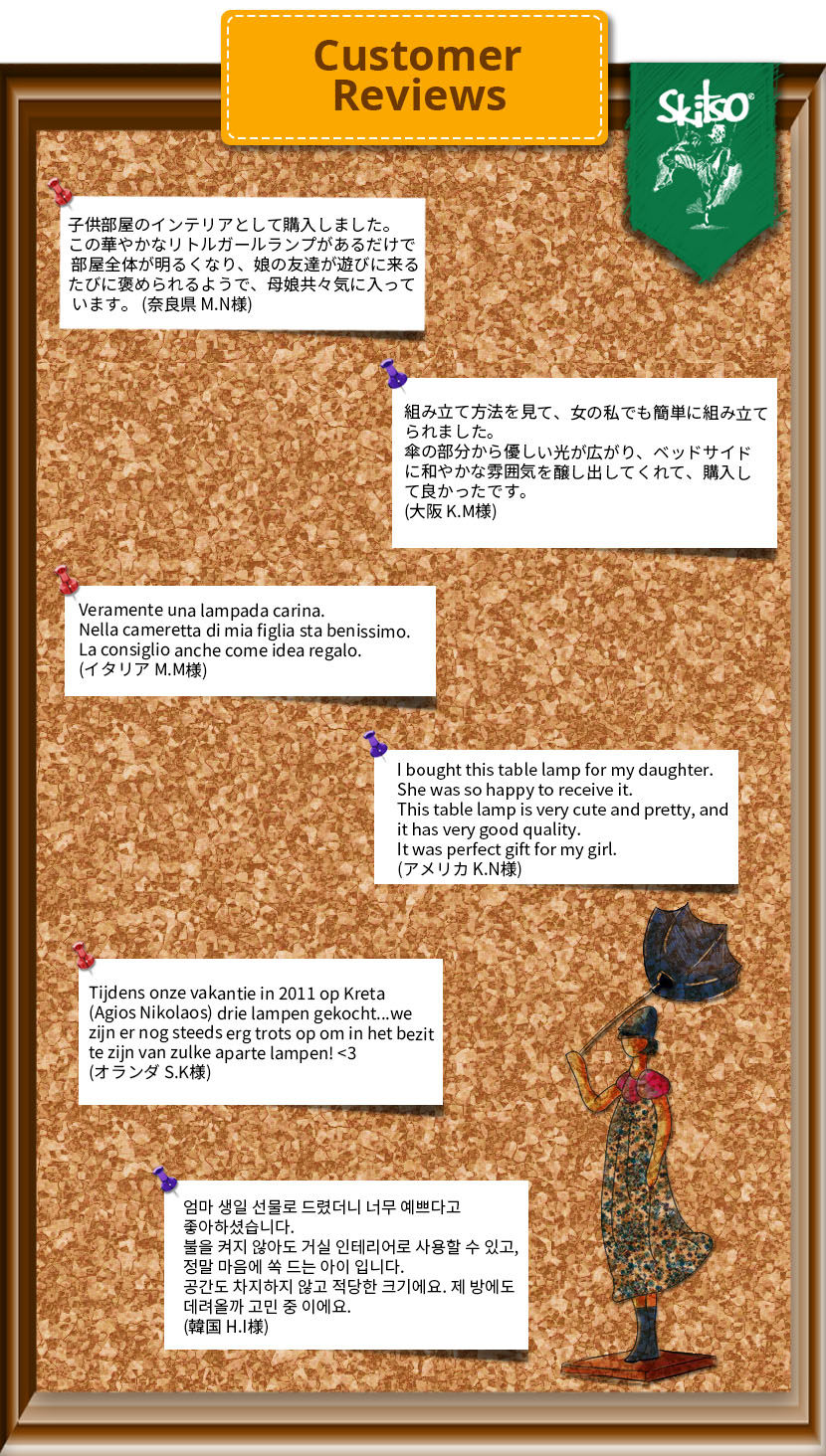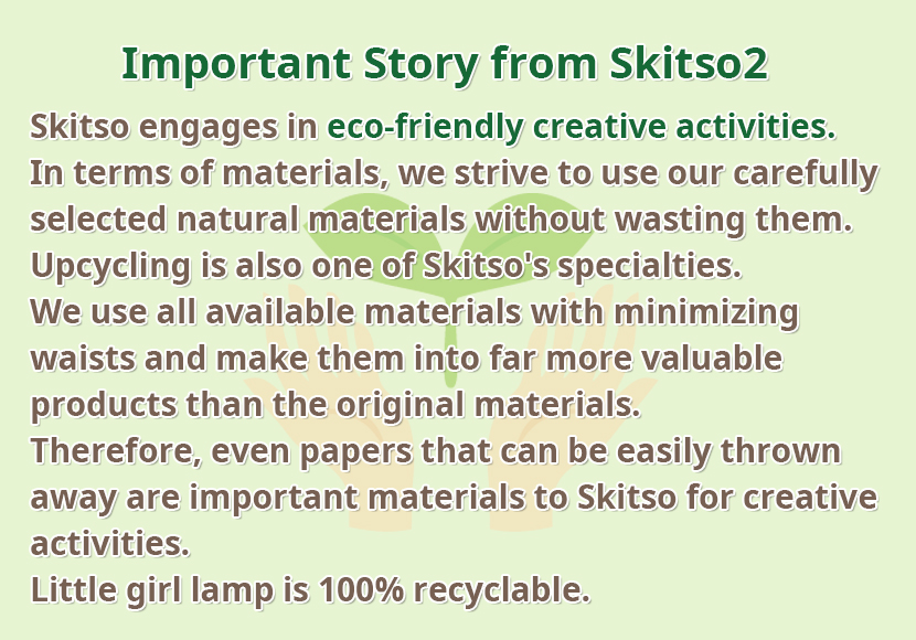 Made with wood and fine fabrics purchased in Europe, Little Girl Lamp is built hand crafted and hand painted. Since hand crafted, no little girl is same as others, and it is the only one for you in the world.