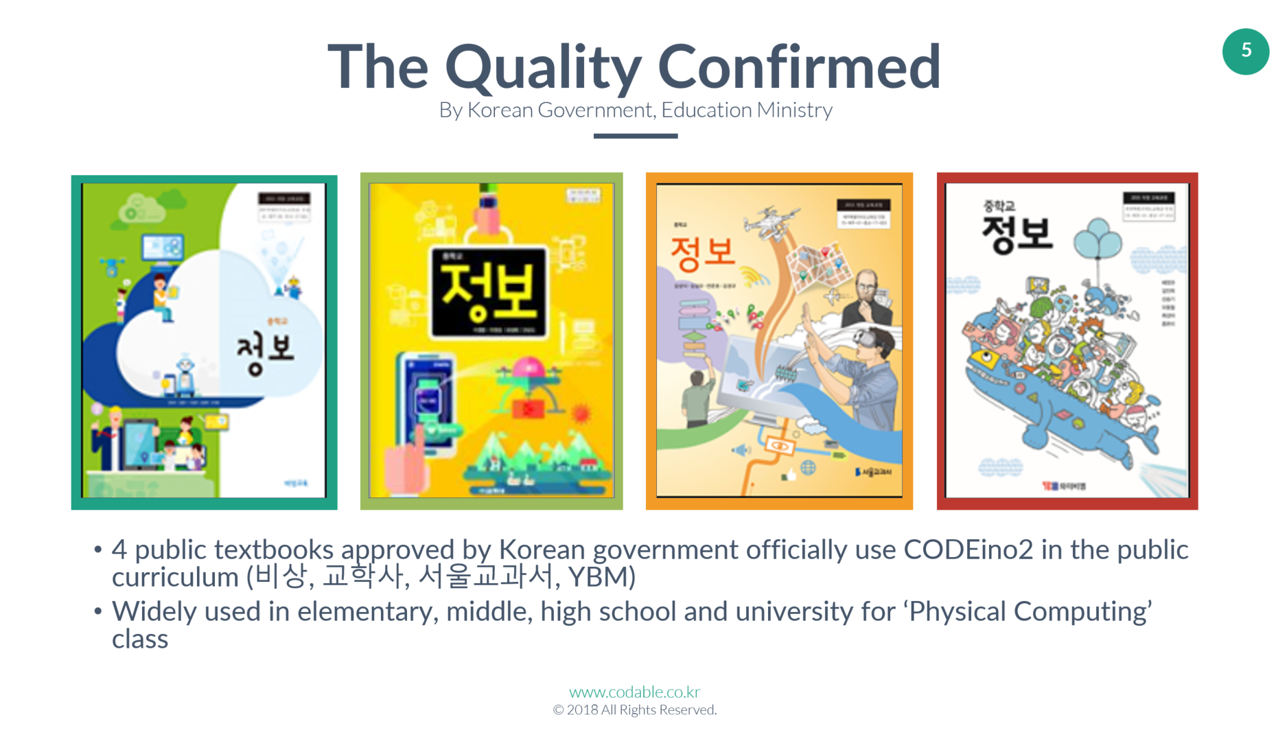 The CODEino2 board is listed in Korea's four secondary textbooks.