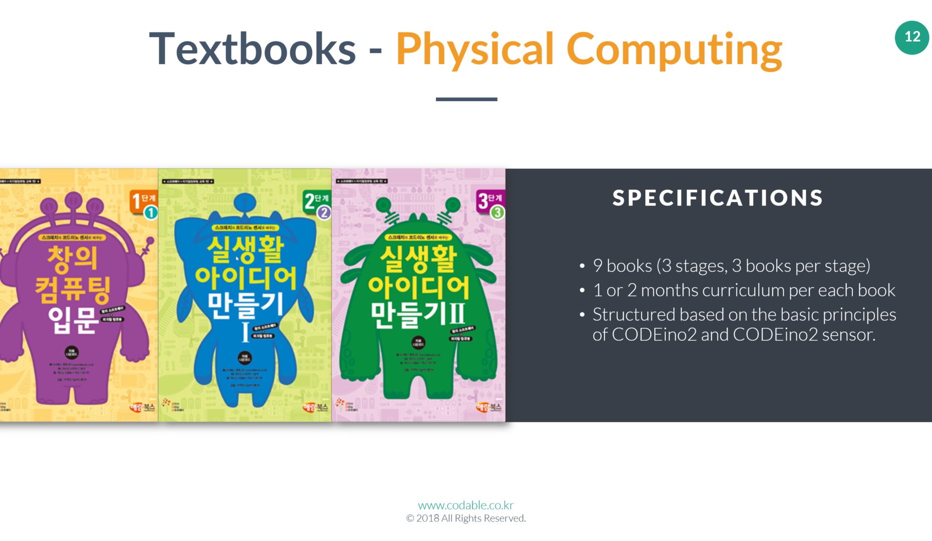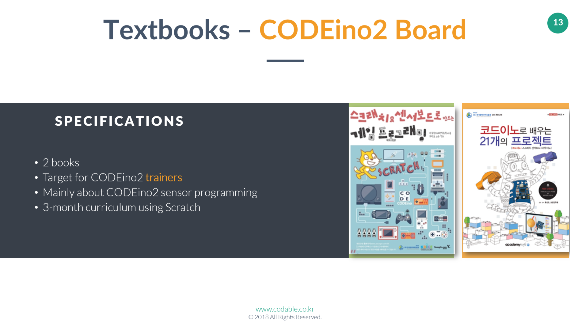 The CODEino2 board in the textbook is a regular coding education tool used in elementary, middle, high school and university in Korea.