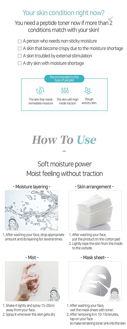 - Gives moisture care and elasticity promotion, as it contains peptide.