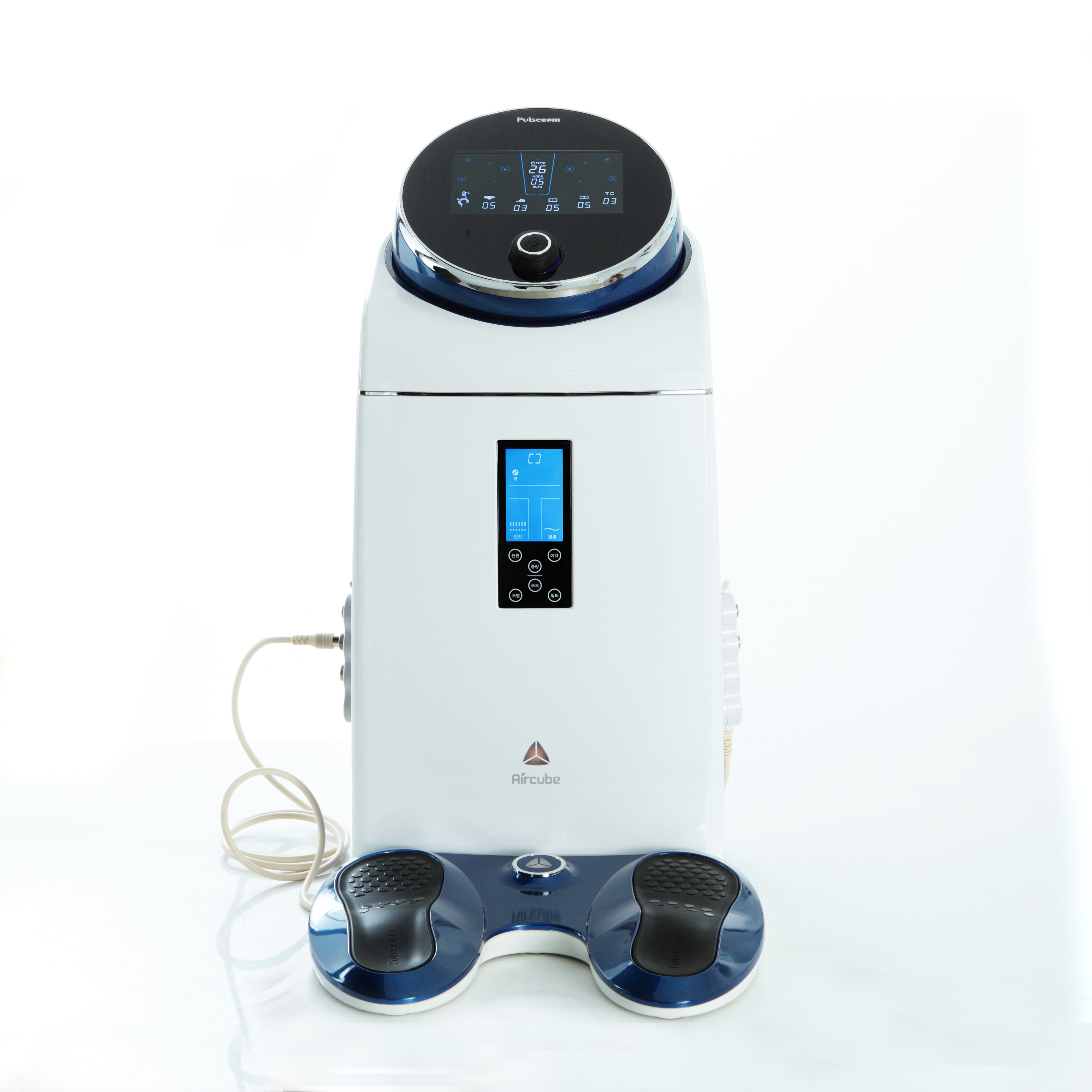 The bottom of the machine is consisting of the Air-cube. The traits of Air-cube are a holder for low frequenct stimulator as well as air-purifier. Air-cube can cover the 49sqm of the room.