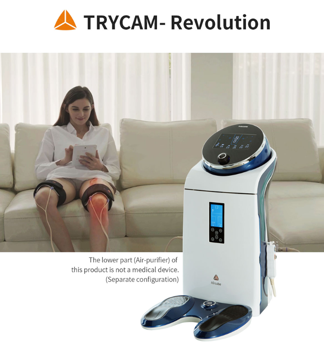 Trycam-revolution is a pain relief machine by using low frequency. The basic concept is based on Massage, Thermotherpay, low frequency, and Acupunture. It helps to increase blood circulation and metabloism.