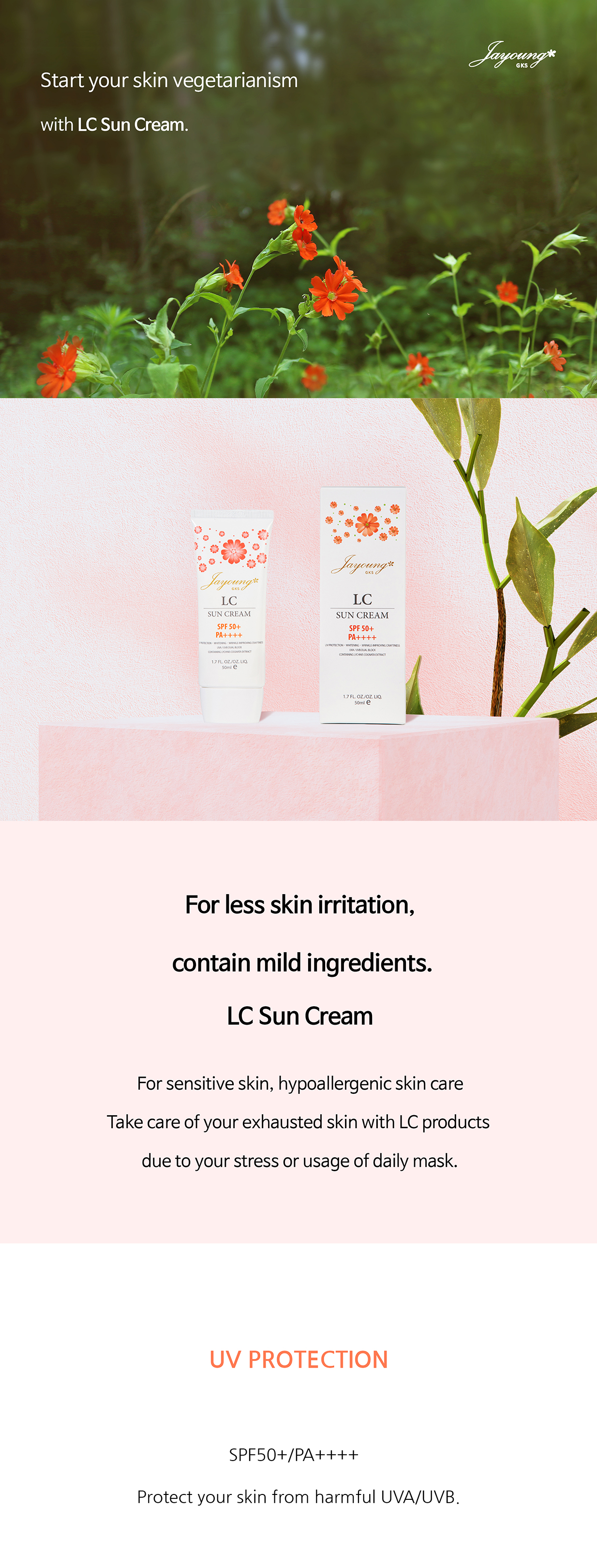 Jayoung GKS LC Sun Cream will give you crucial sun protection with no irritation, white cast, or sticky and greasy feeling.