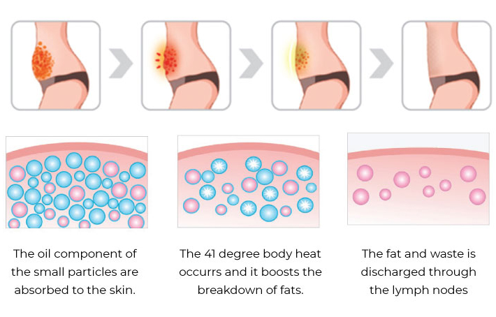 Unlike traditional PPC injection therapy, PPC oil therapy is a non-incisional fat removal treatment done by using PPC materials directly on the skin surface for its absorption to the skin tissue. As the absorbed PPC formula generates heat in the deep tissue, the fat is gradually dissolved and broken down. |