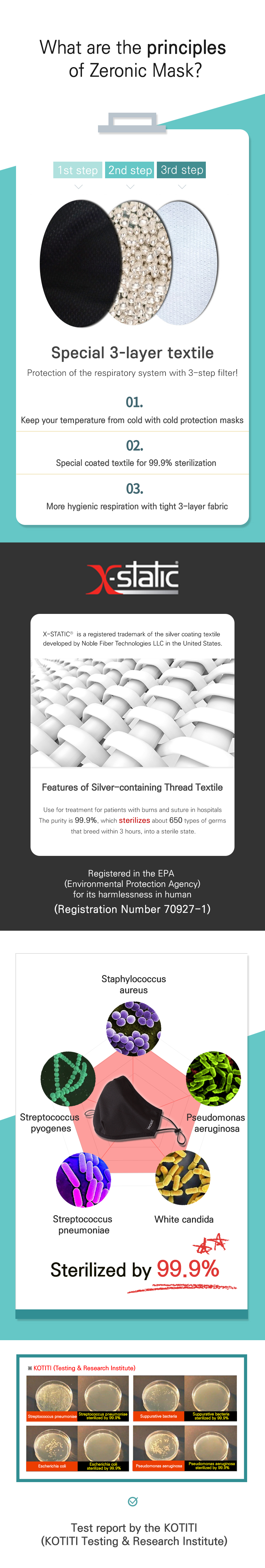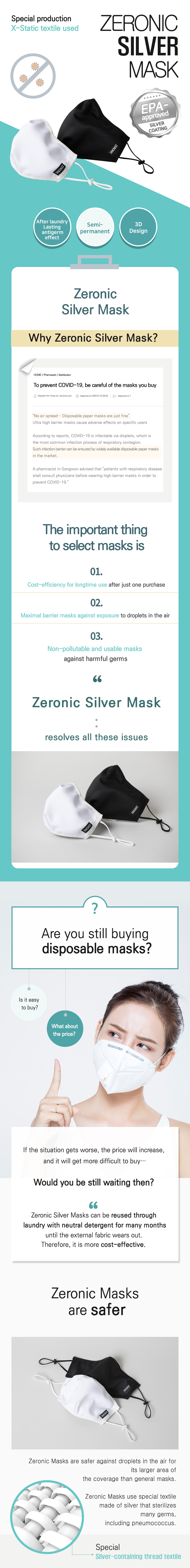 ZERONIC SILVER MASK 99.9% sterilization Silver-containing thread textile
