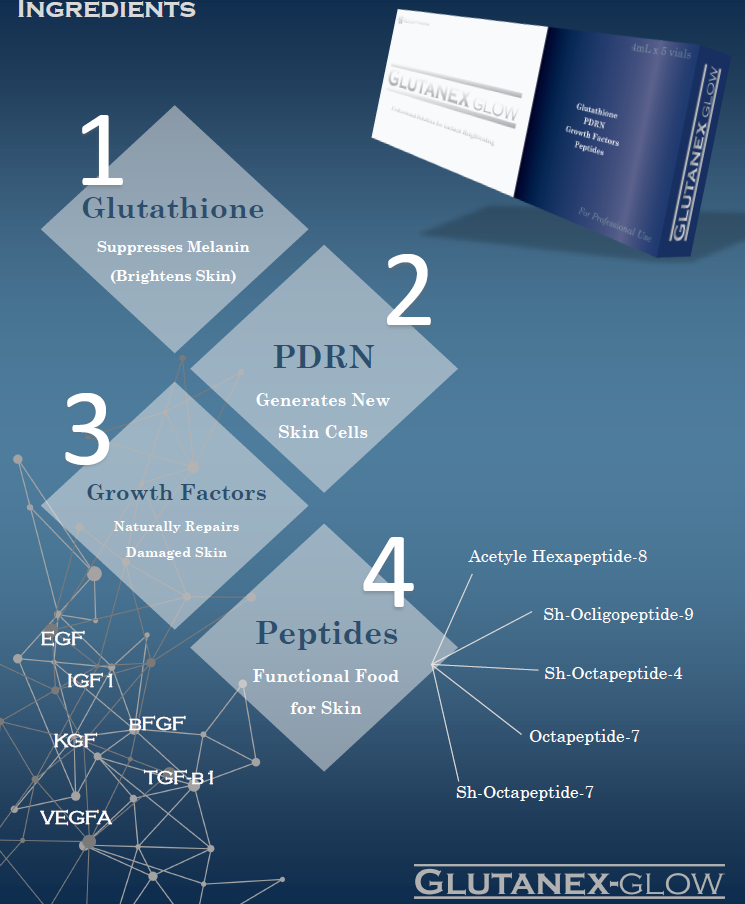 Glutanex PDRN + Glutatione + EGF +Multi Peptide Serum (Whitening and Mesotherapy Solution Injectable