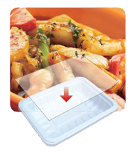 | Also it is allowed tray shape due to the customized mold. The contents of tray is kept safe at 110℃ after sealing and at 100℃ in microwave and oven. | ![]() |
