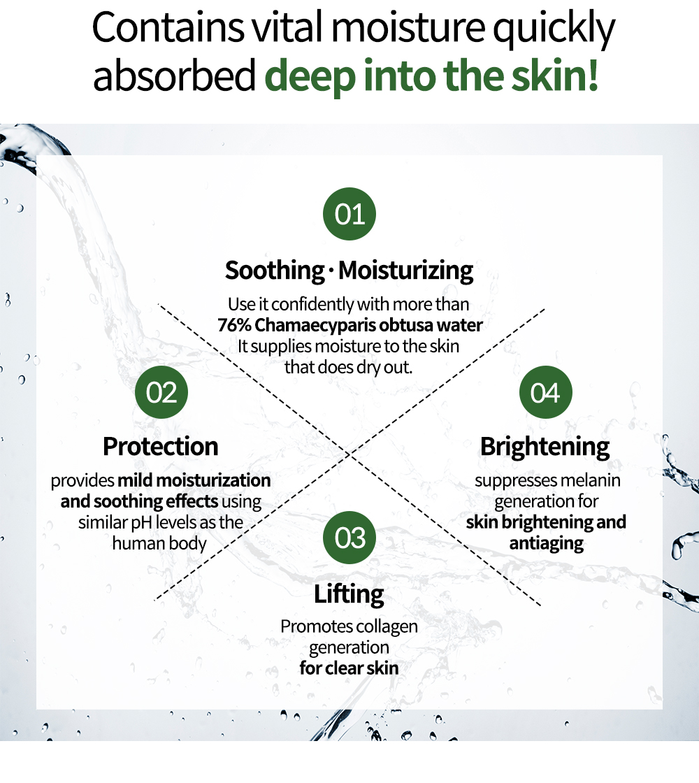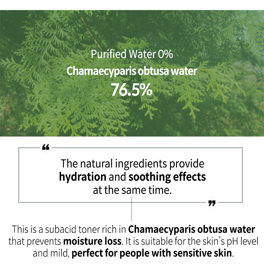 This product, containing more than 76% (cypress water), is perfect for moisturizing and soothing your skin.