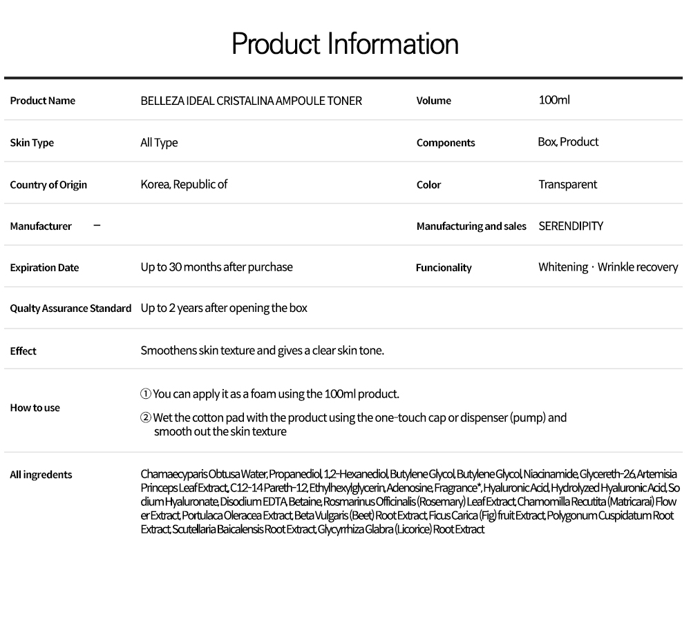 BELLEZA IDEAL Cristalina Ampoule Toner 100ml