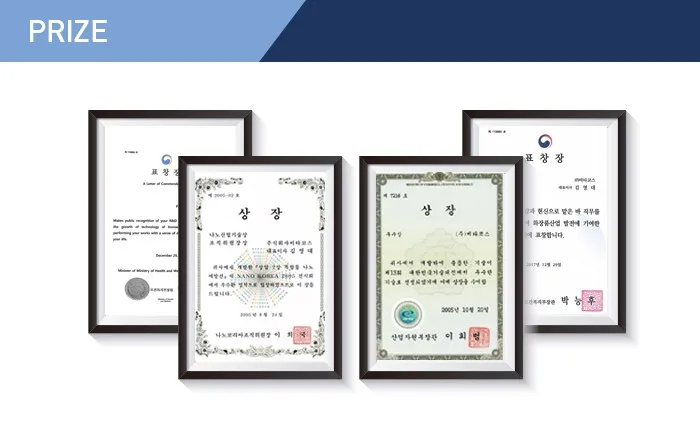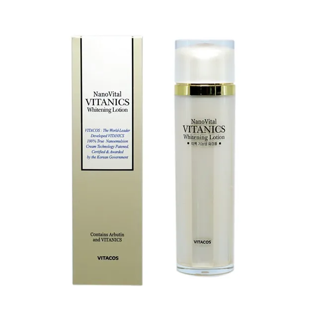 This whitening Lotion is the first 100% true nanoemulsion oriental herb lotion, and has been manufactured with anti-oxidative NANO Tocopherol derivatives, VITANICS, lonicera japonica, ginseng, etc... and using the Korean patented Θ-point two-phase complex 100% true nanoemulsion manufacturing technology, which was certified as an Excellent New Technology (Korea NT # 2002-027) and awarded 2 prizes, one from the Minister of Industry, Resources, and Energy of Korea at the 2005 NEWTECH Korea and the other from the Organizer of the 2005 NANO Korea Symposium and Exhibition. VITANICS has been patented in 12 countries worldwide and the Korean patented Θ-point complex nanoemulsion technology is patented in 5 countries worldwide.