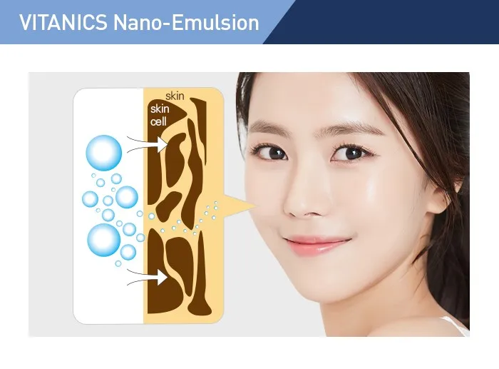 100% true nanoemulsion cosmeceutical formulated with arbutin, oriental herbs, and VITANICS,