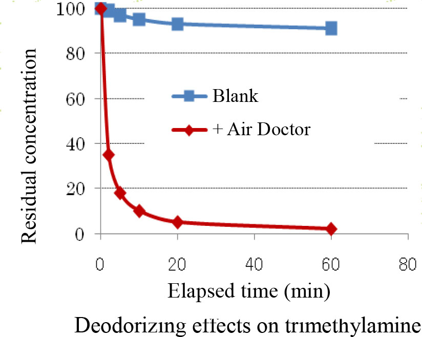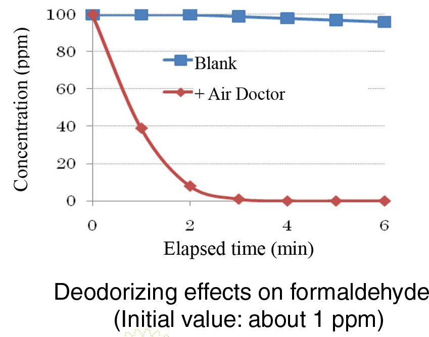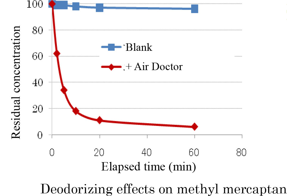 | Deodorant target | HYDROGEN SULFIDE, AMMONIA, METHYLAMINE, TOLUENE, MOLD, TOBACCO ODOR, ETC. |