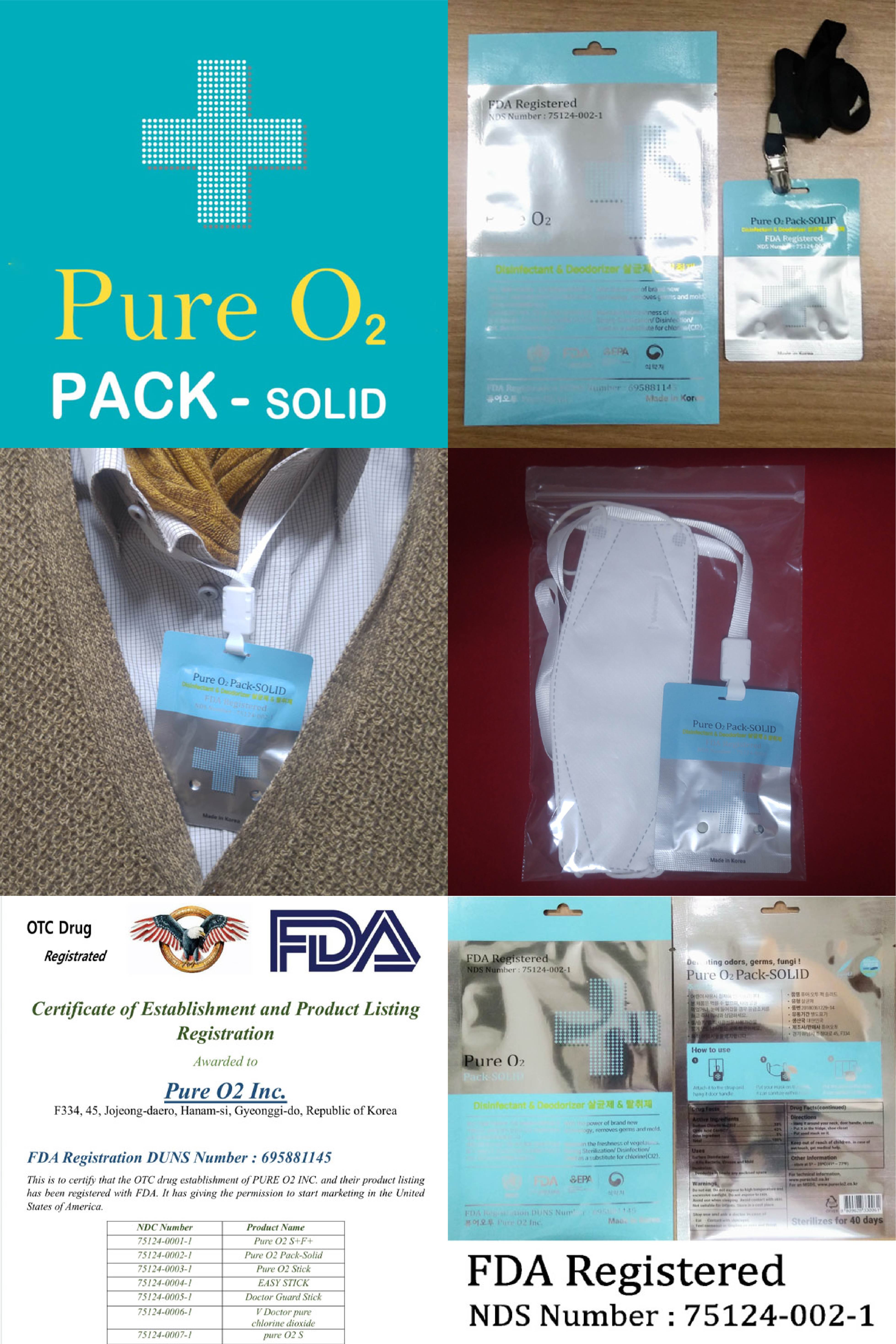 PURE O2 Pack gives you a good hygiene life and comfortable feeling wherever you go, thanks to the power of solid chloride dioxide which provides a space that is microorganisms- free.