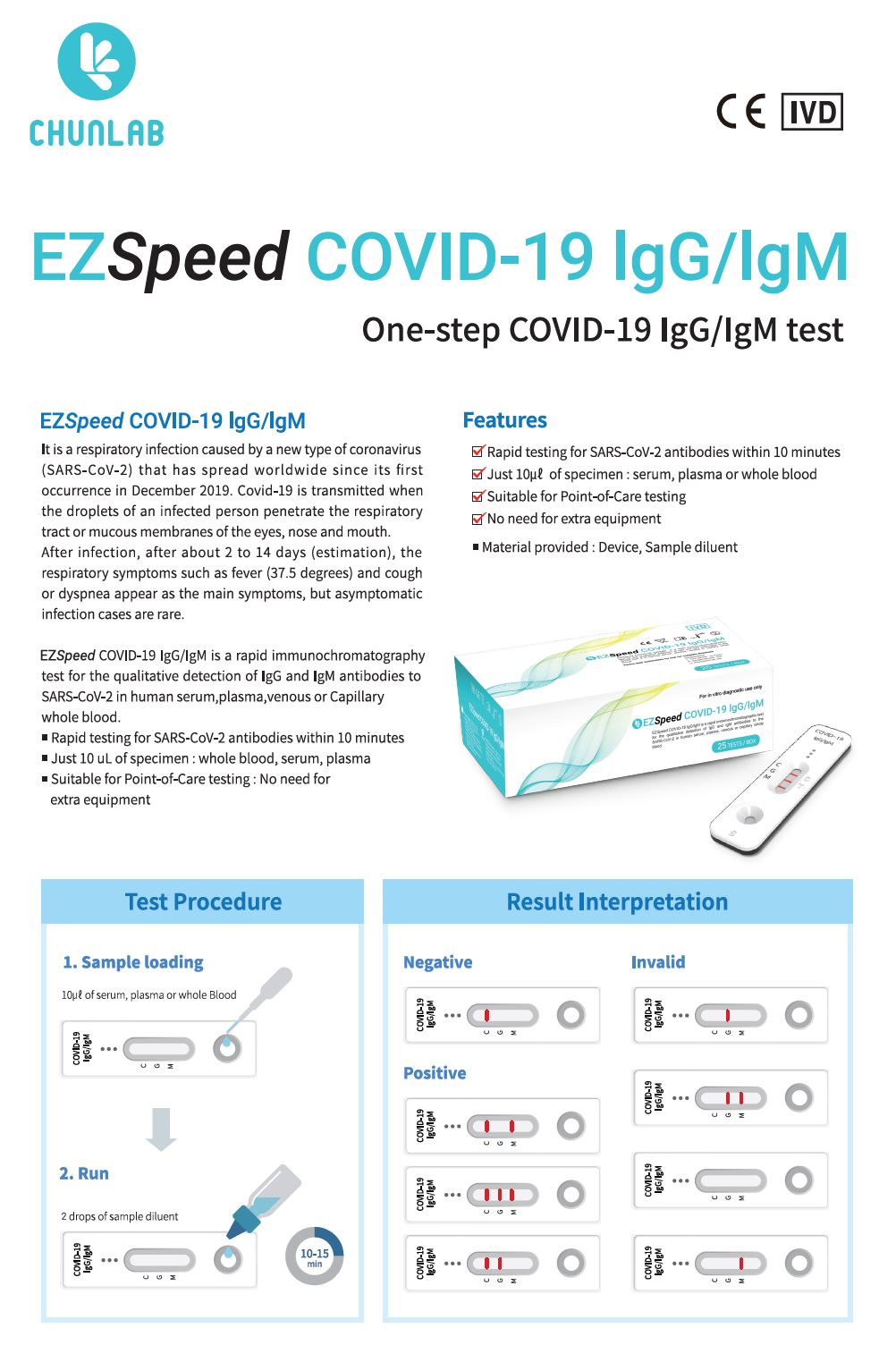 EZSpeed COVID-19 IgG/IgM is a rapid immunochromatography test for qualitative detection