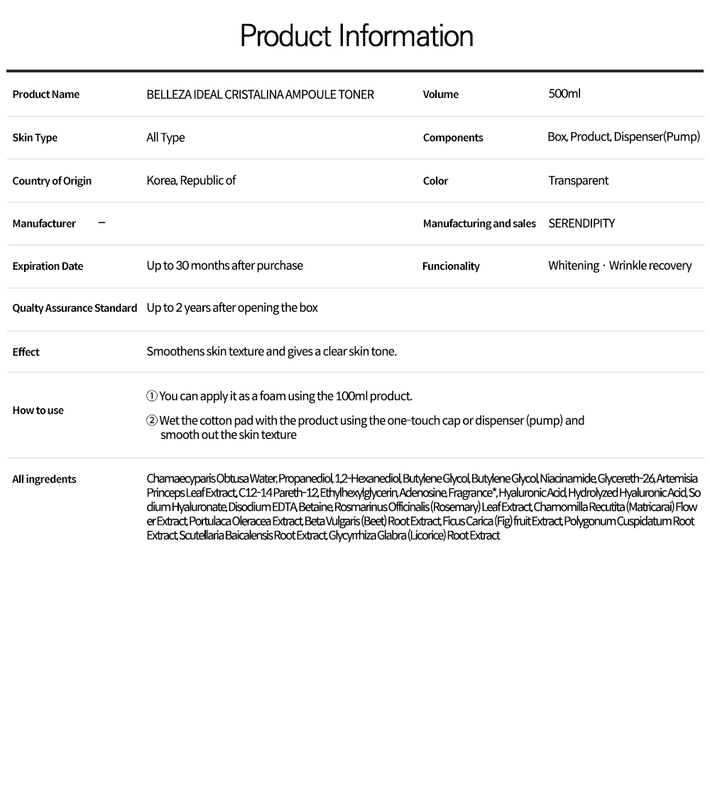 BELLEZA IDEAL Cristalina Ampoule Toner 500ml