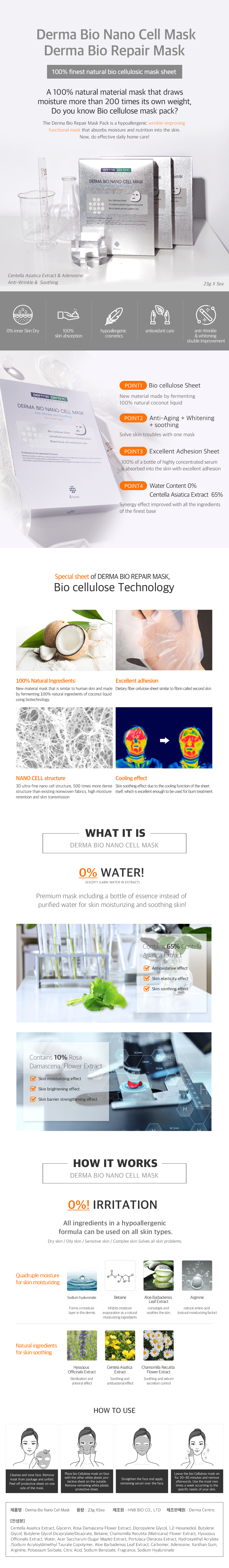 improve skin whitening and aging. This is a high density mask pack that is comfortable to use and not sticky. Use 5 pieces a week. Derma Bio Repair Mask is a premium mask that gives immediate calming effects `