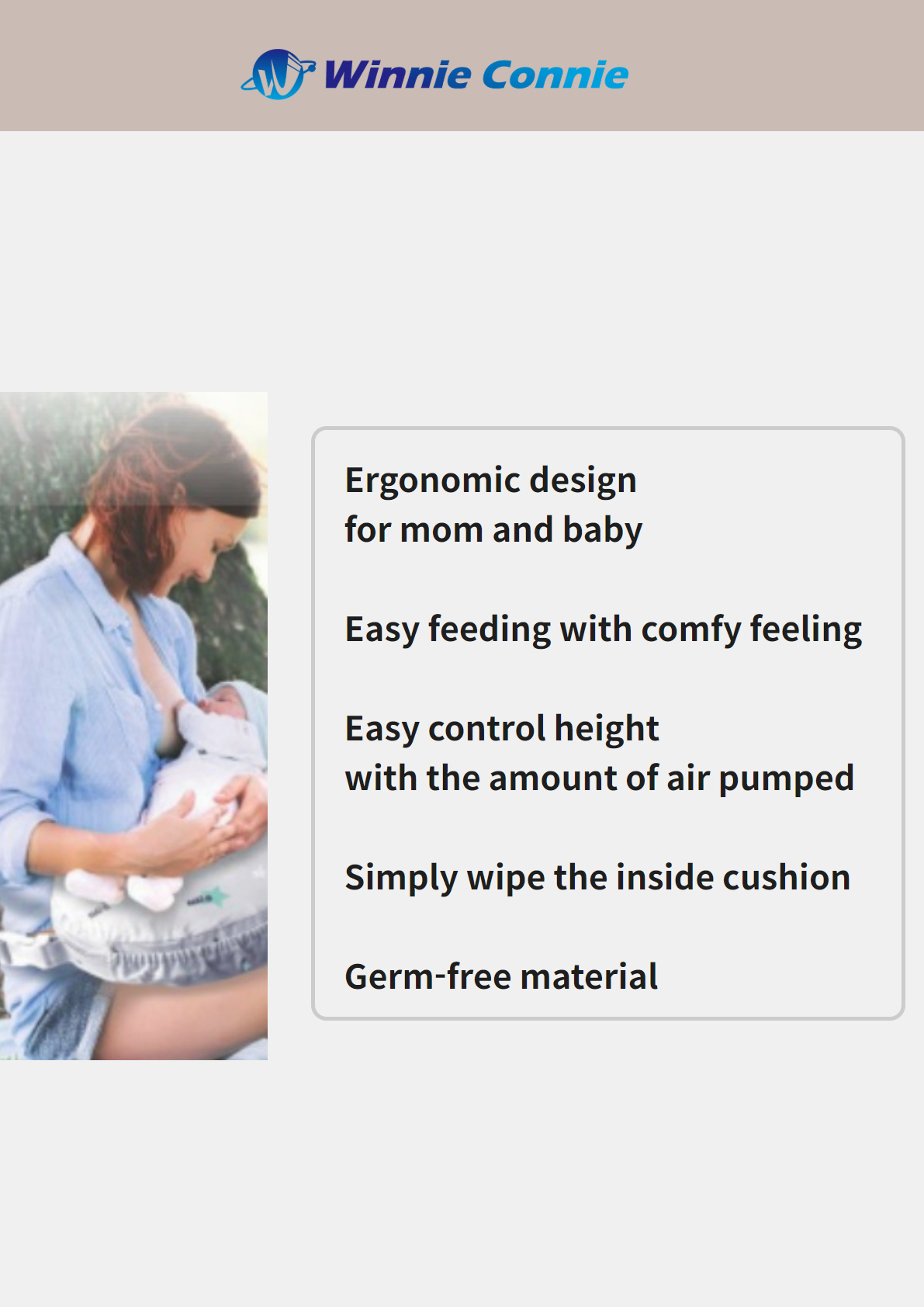 As the area for the baby's head is higher, the baby can be given breastfeeding or bottle-feeding comfortably and the mother can move her arms freely.