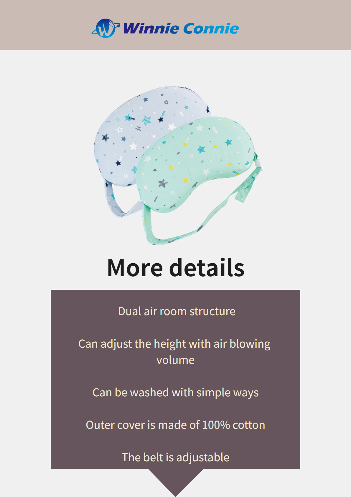 The user can adjust the height with air blowing volume according to the size of the baby.