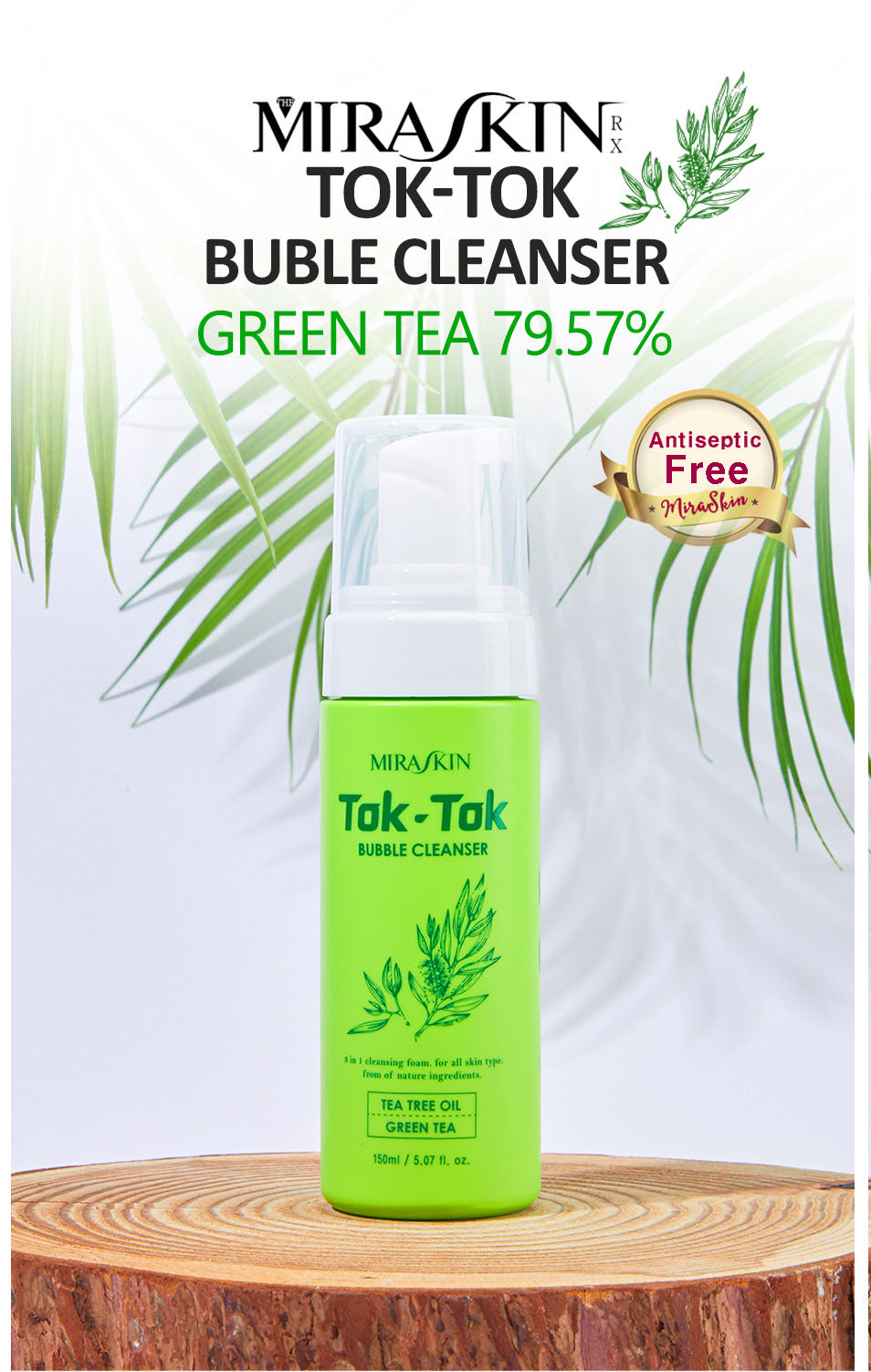 3)0% of a surfactant or chemical antiseptic: Instead of a surfactant or chemical antiseptic that causes atopy and skin troubles, natural ingredients minimize skin irritation and soothe your skin.