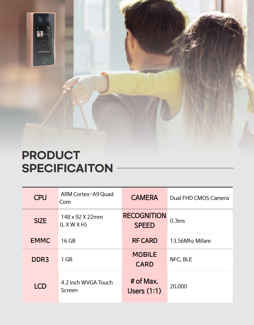 - From a distance, just by walking towards the device, it conducts identification & authentication