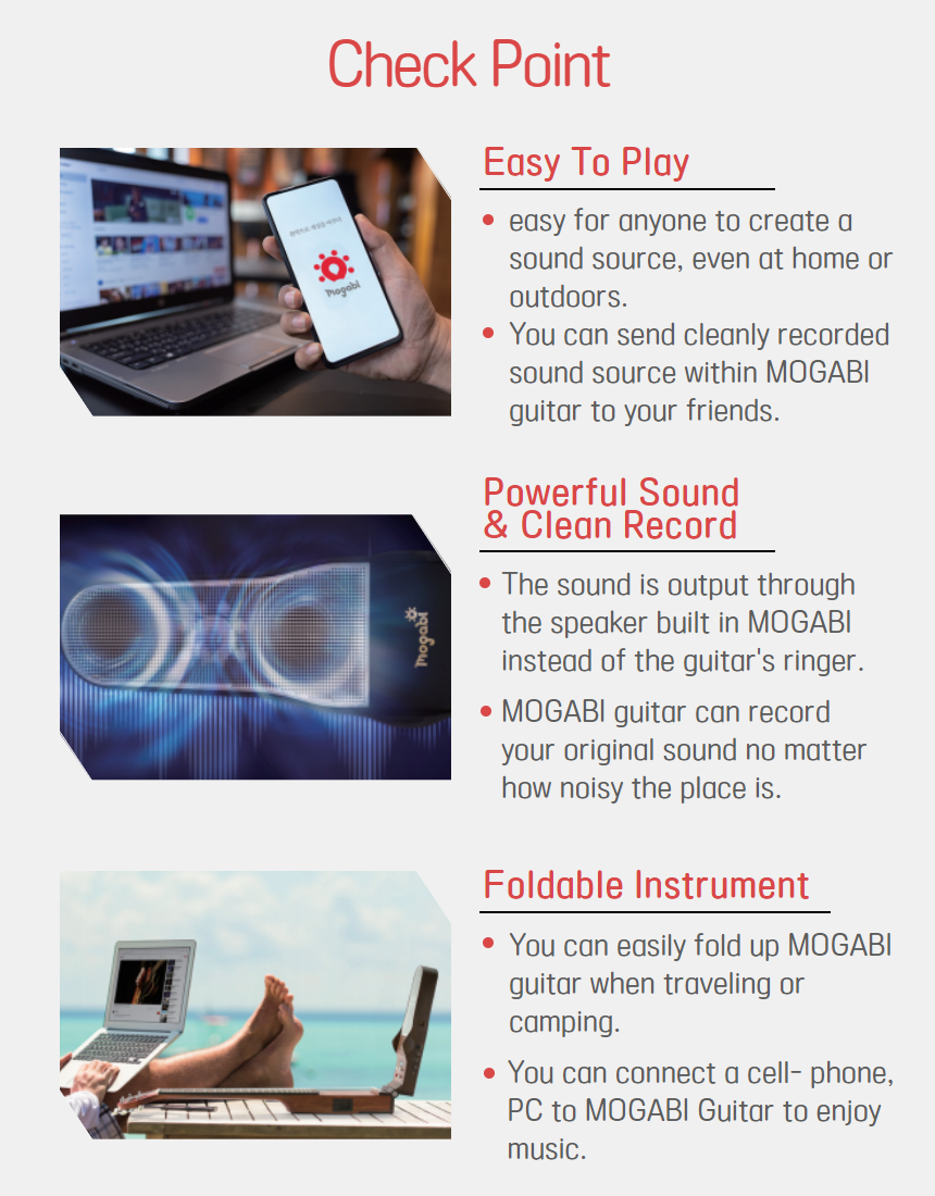 MOGABI Smart Guitar makes it easy for anyone to create a sound source, even at home or outdoors.