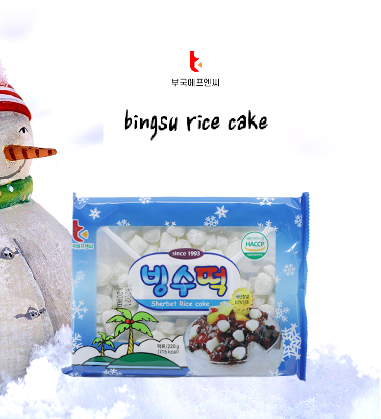 Shaved ice rice cake that can be used with various toppings on cool ground ice such as red bean shaved ice and fruit shaved ice, or topping on Yogurt.