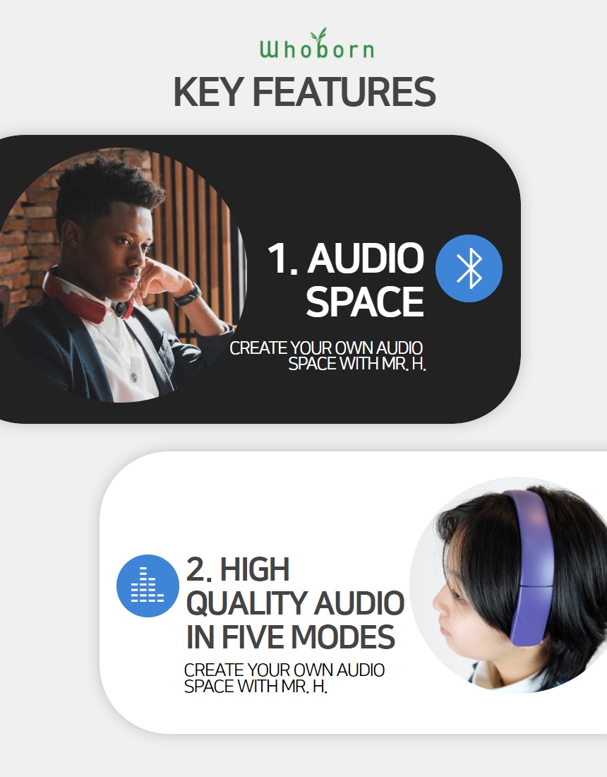 These technologies are applied to all sounds delivered from Mr. H’s audio player