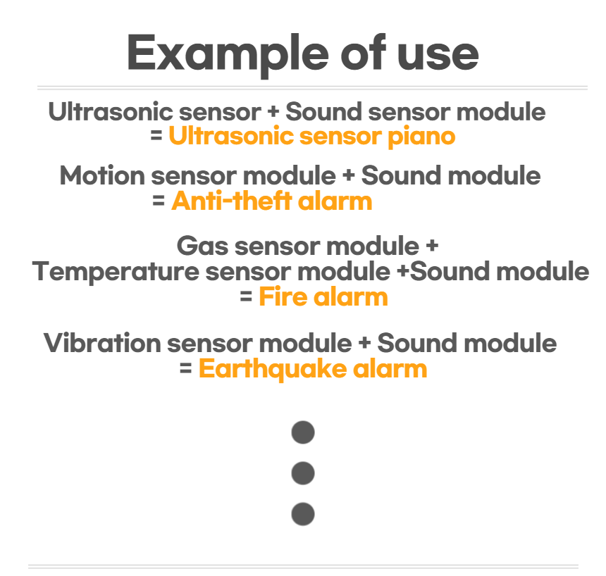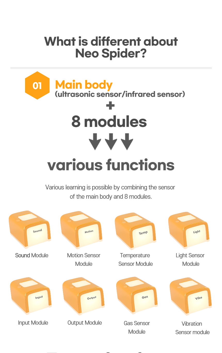 Children can learn the operating principles and methods of various sensors in our daily life easily and in a fun way through this product.