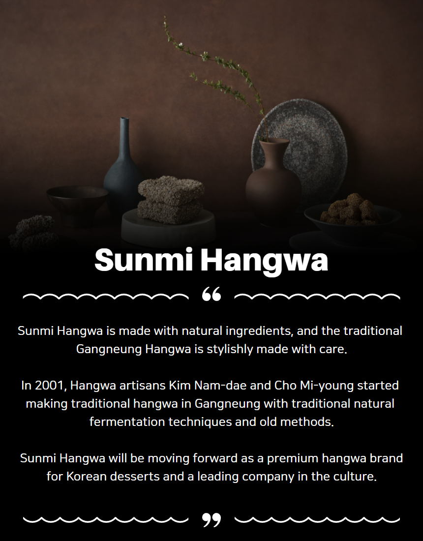 As a premium Korean confectionery brand, Sunmi Hangwa will not only make and provide Korean confections, but also lead the new Korean dessert culture.