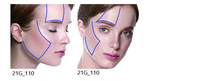 - DOUBLE-LOC Plus® has a 180˚ directed solid molding cog (press method) and it is excellent in tensile strength, traction, and durability due to the strong force of the cog part. It is a 21G type dual needle optimized for forehead treatment.