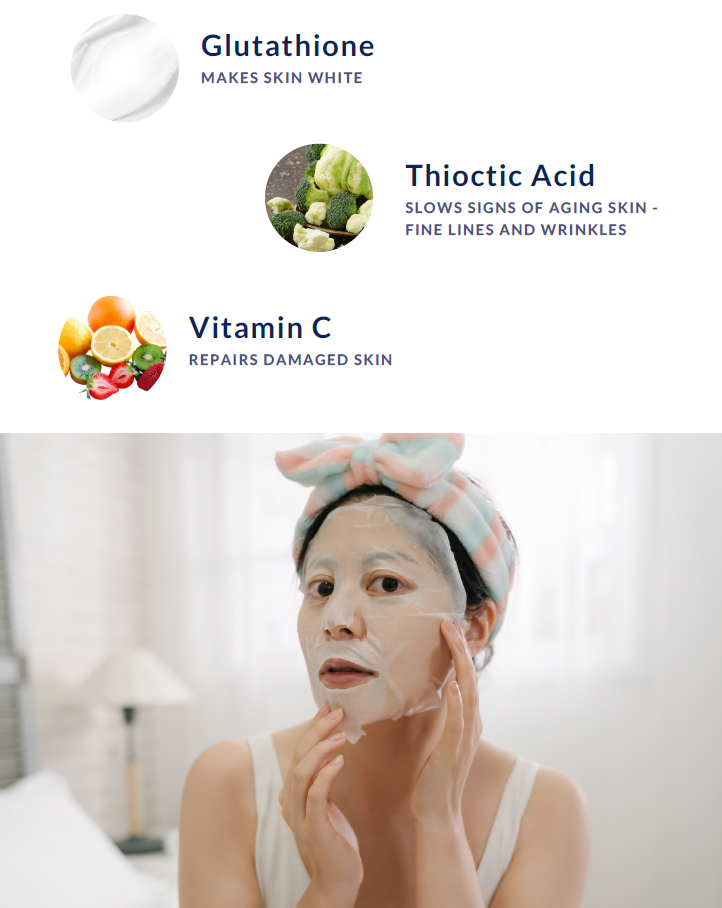 Glutahtione Skin Whitening Booster Kit ( Glutathione Sheet Mask Korean Mask Pack+Glutathione Pill)