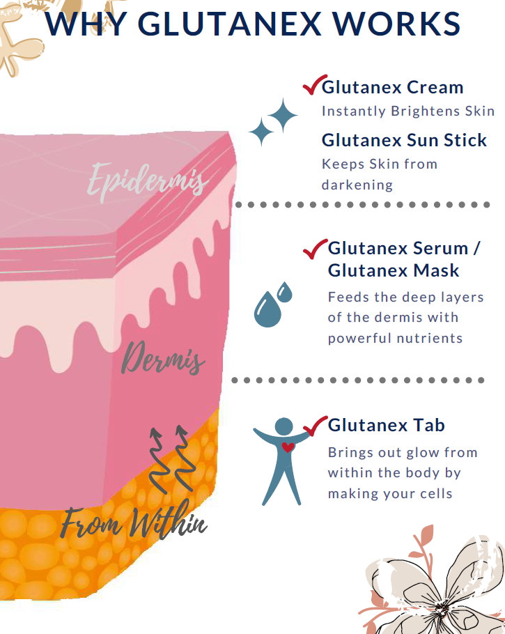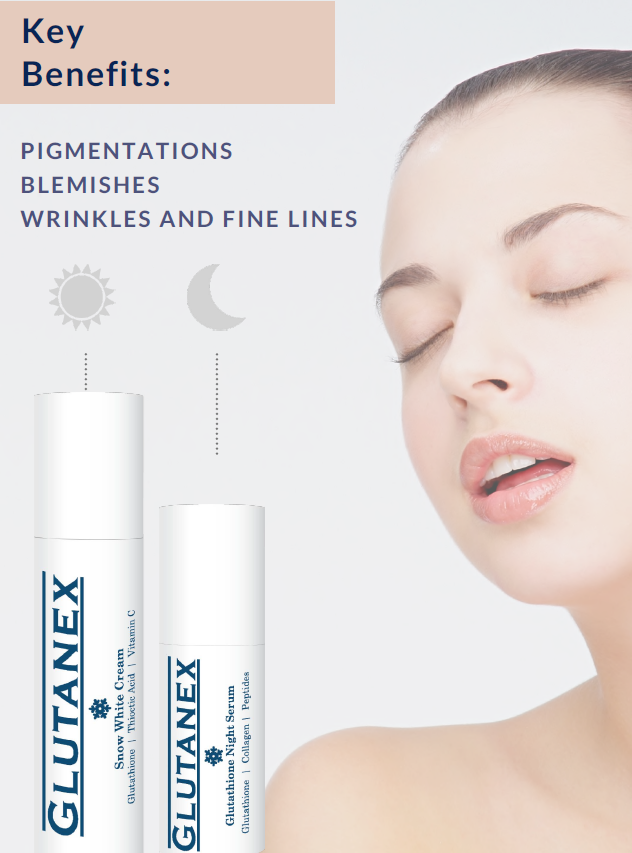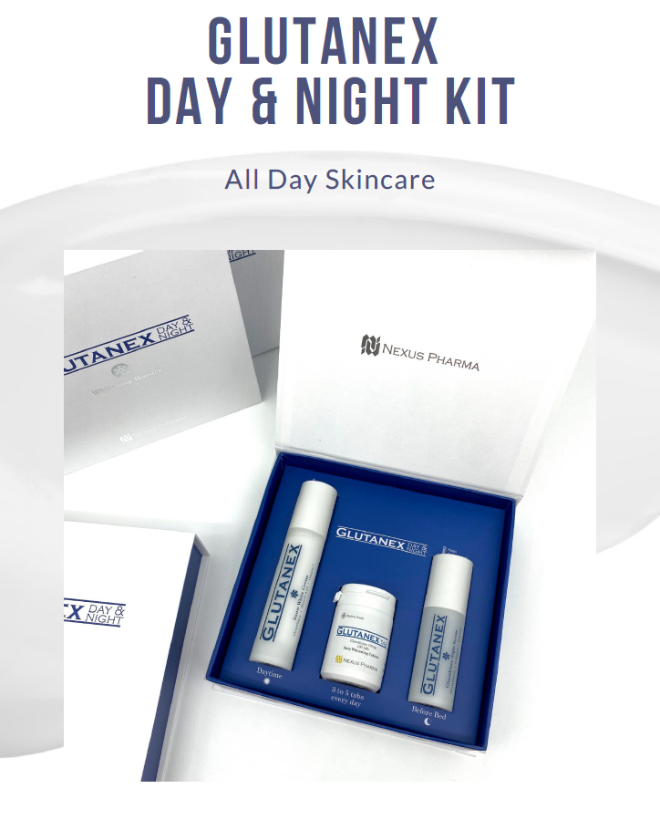 Glutanex Day & Night Kit (Glutathione pills+ glutathione skin whitening cream + serum)