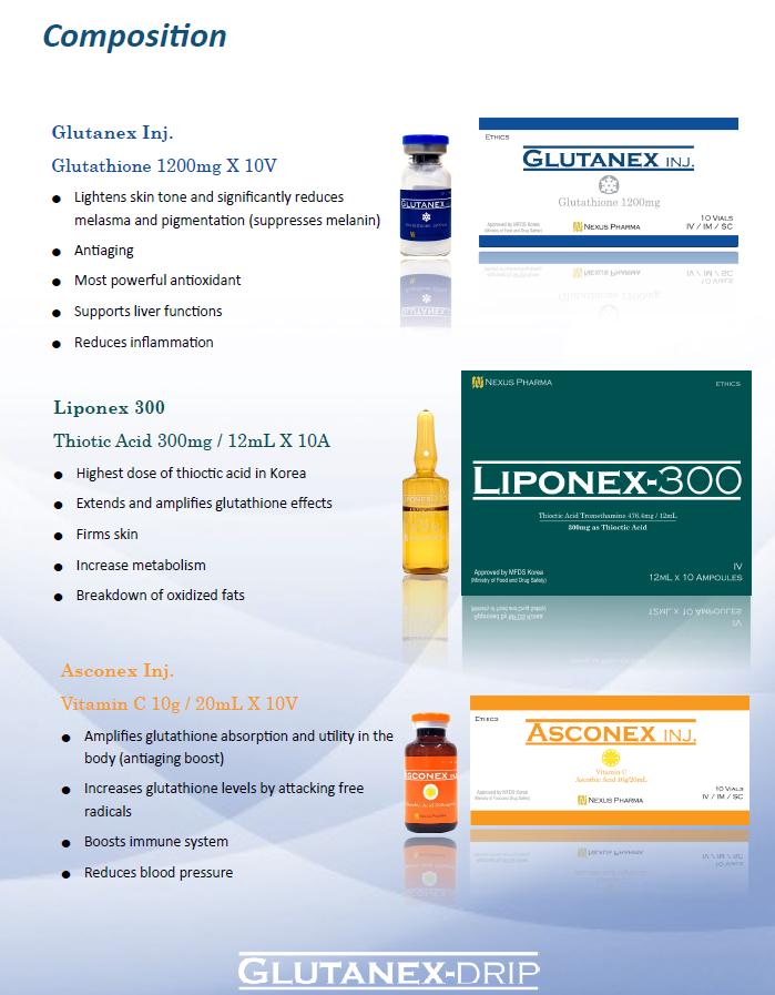 Glutanex Glutathione 1200mg skin whitening set Dark Spot Remover Anti-oxidant Anti-aging