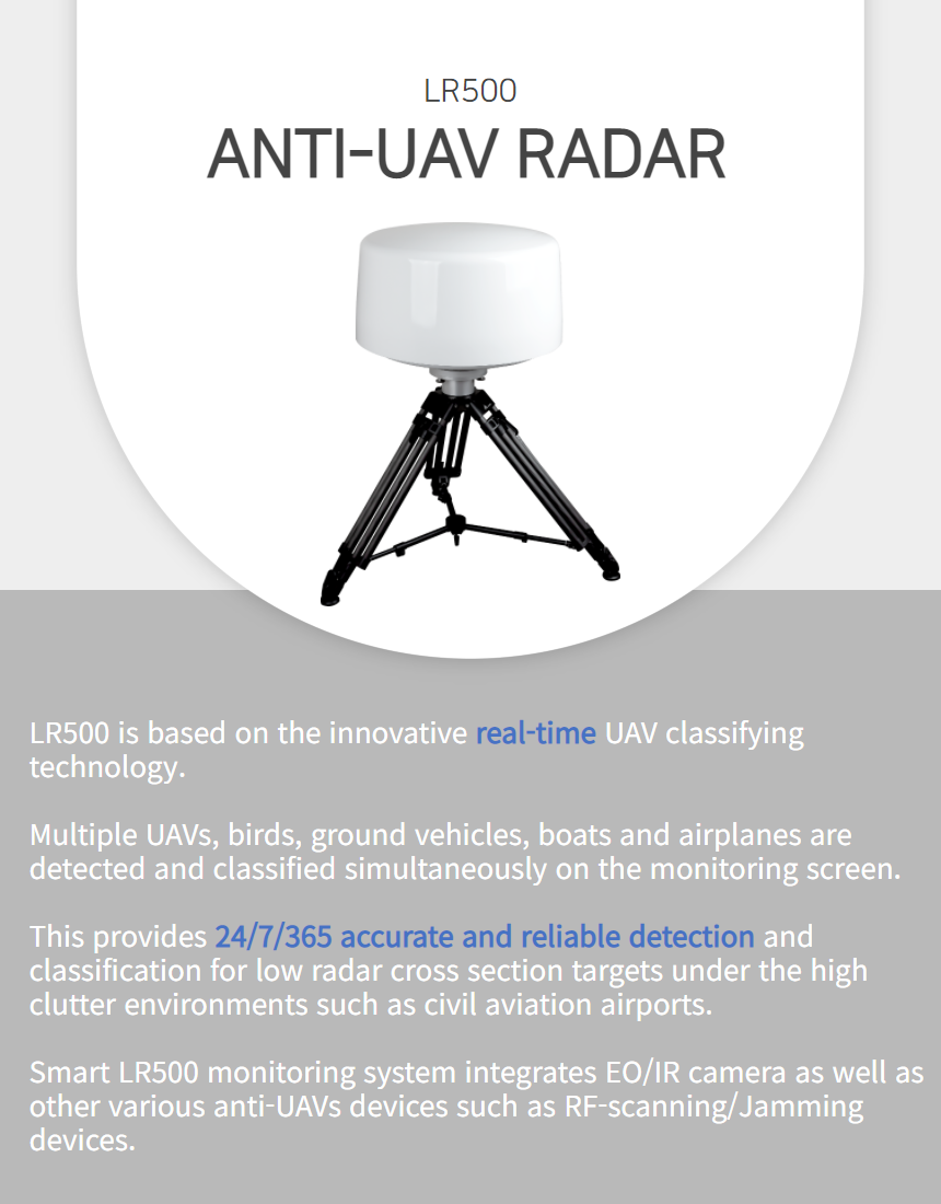 Counter-UAVs/Drone Defense Radar [Model No.: LR500]