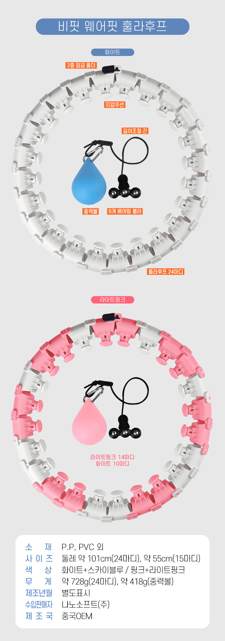 - gravity ball weight 418g / 24 hoops 101cm, 728g