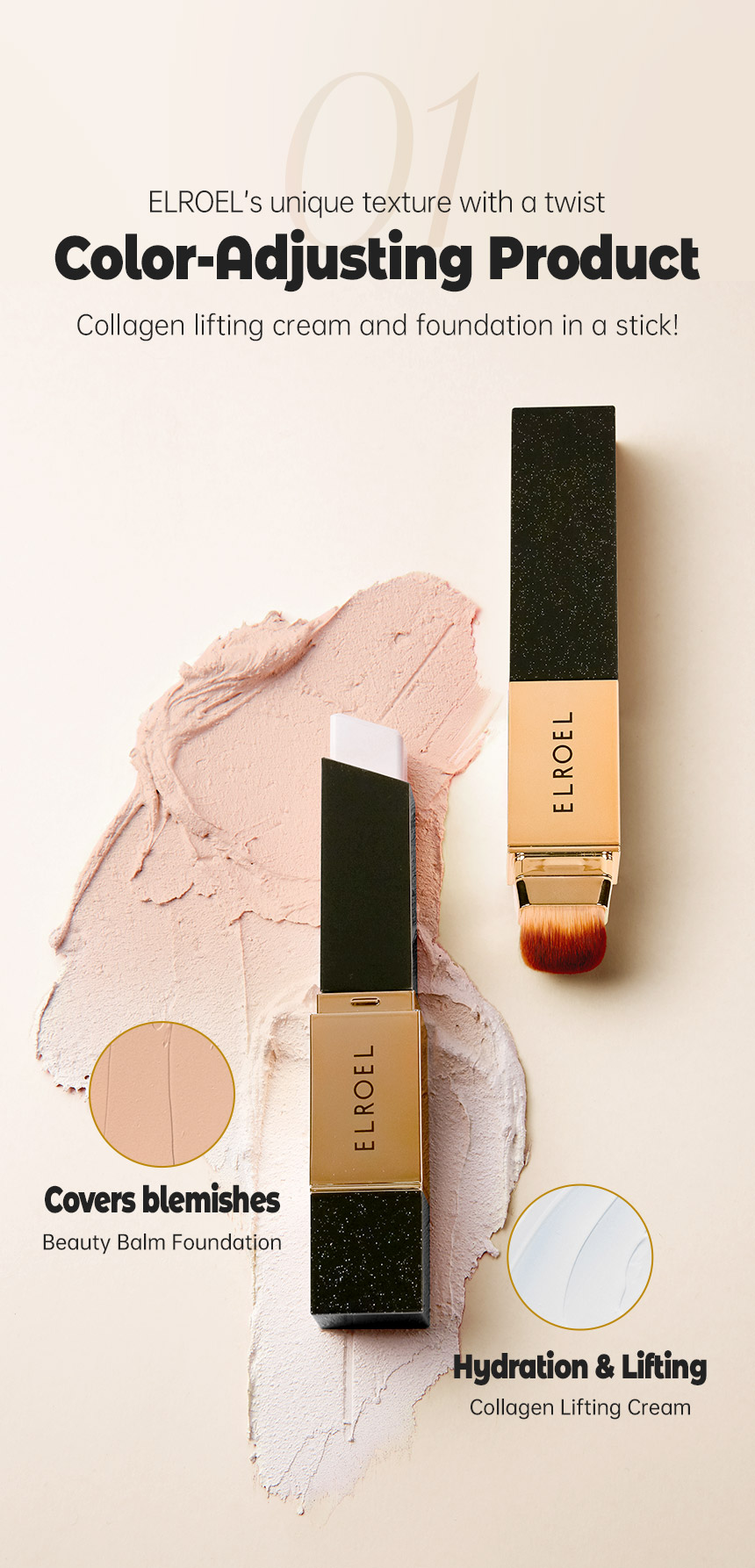 As a form with a twist, it presents an exclusive formula that transforms from cream to foundation.