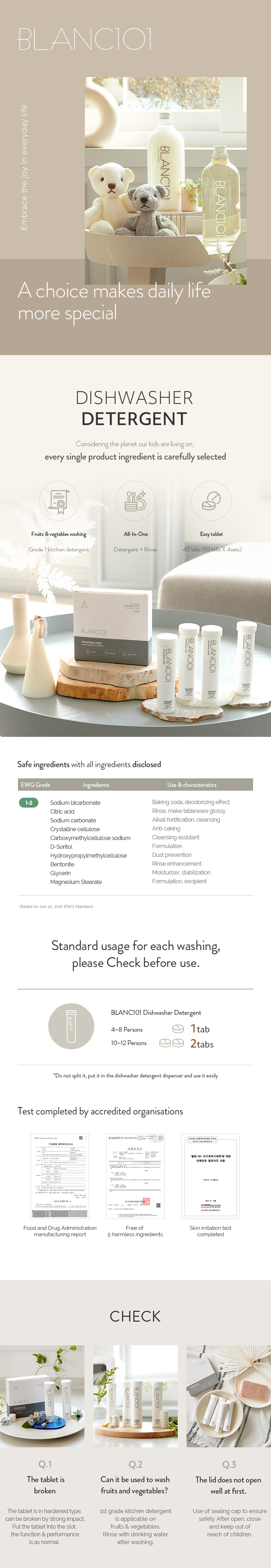 Blanc 101 dishwasher detergent with natural ingredients can be used safely