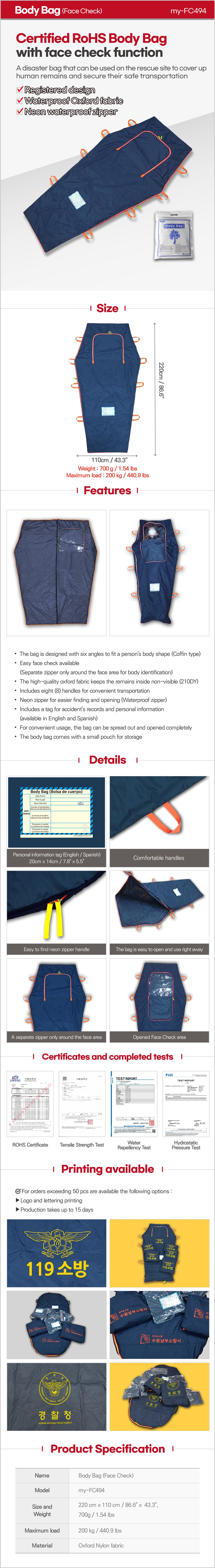 Certified RoHS body bag with face check function
