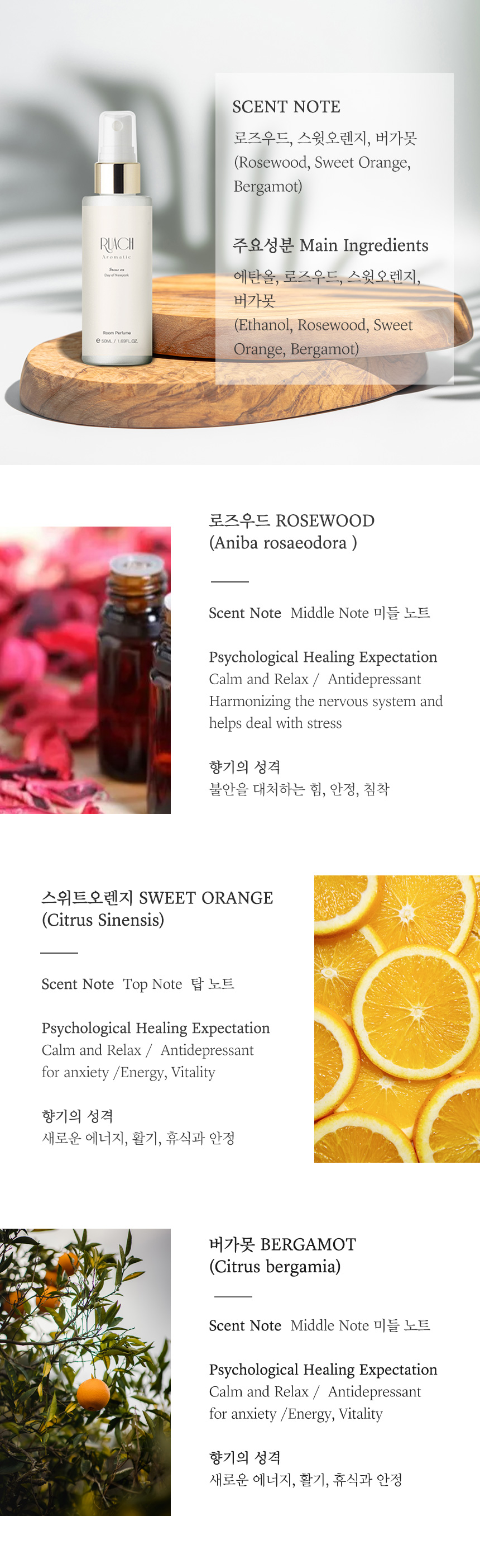 The room perfume consistS of Rosewood, Sweetorange, Bergamot.