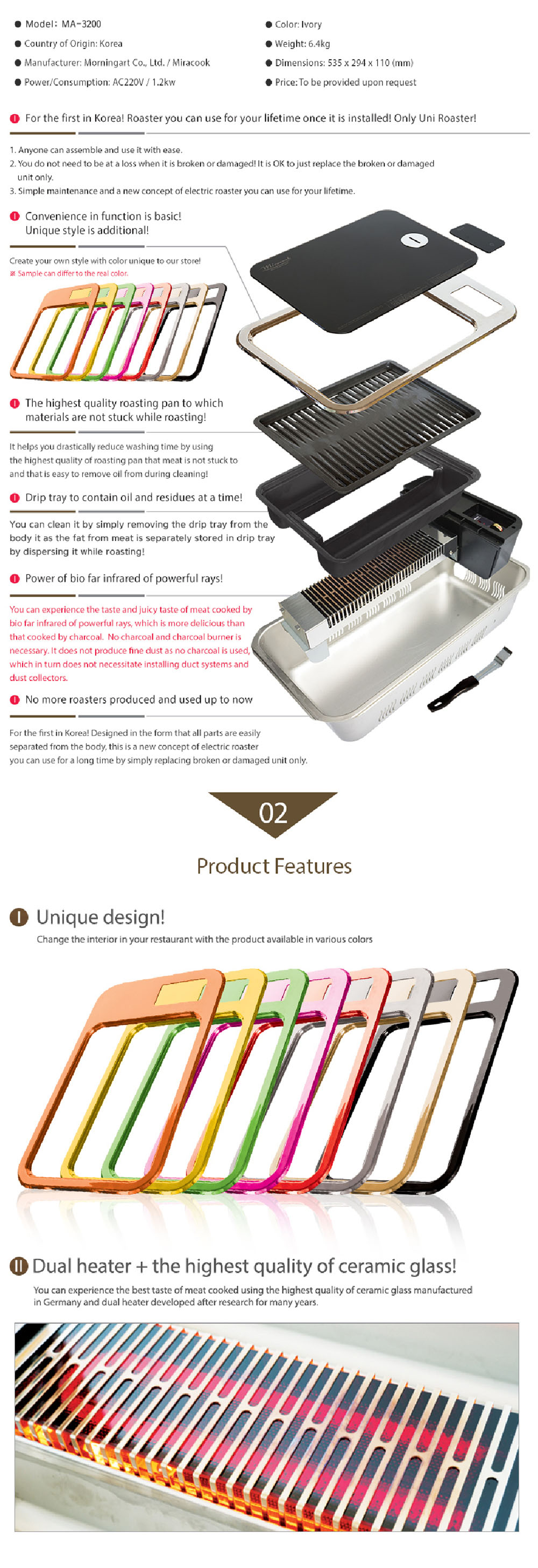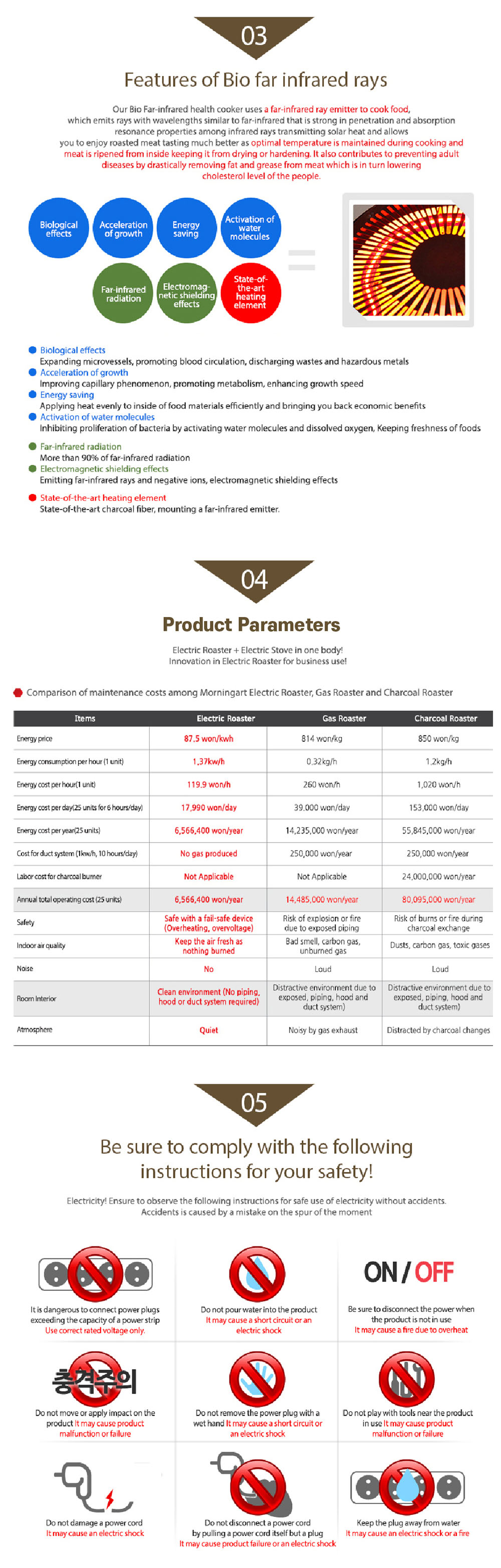 Based on 25 years of OEM experience with Samsung and LG Electronics, this product has been focused on the far-infrared electric roaster field for 52 years. Used in over 5,000 stores in Korea and 1,400 stores in 20 countries, and especially trusted in the United States.