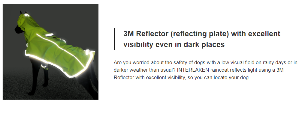 With 100% waterproof coated fabric applied, it can be used on rainy days without any issue, and we have also considered safety even for night walks by adding reflector plates with excellent visibility.