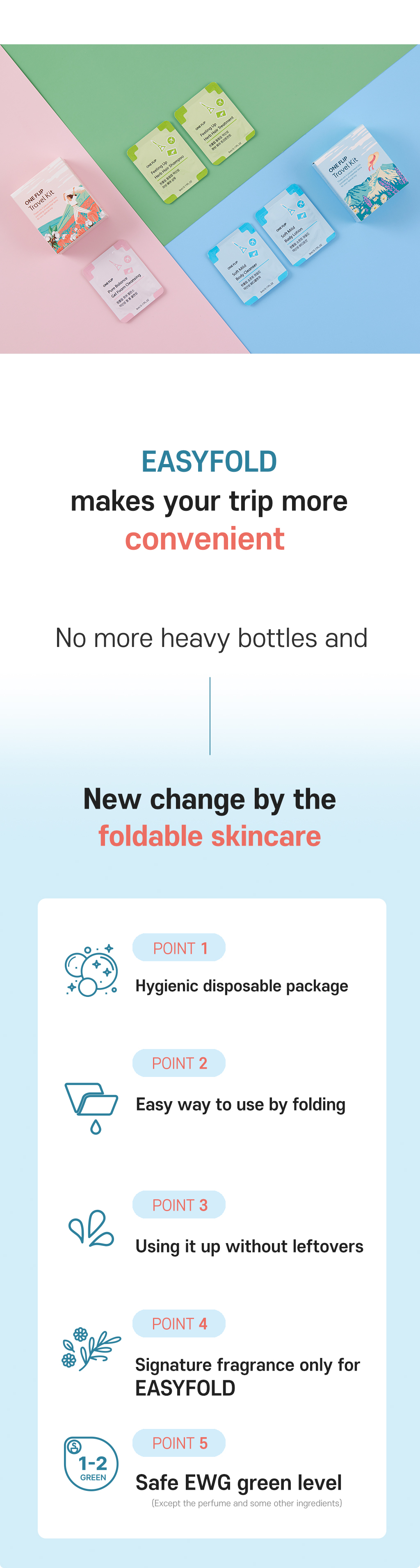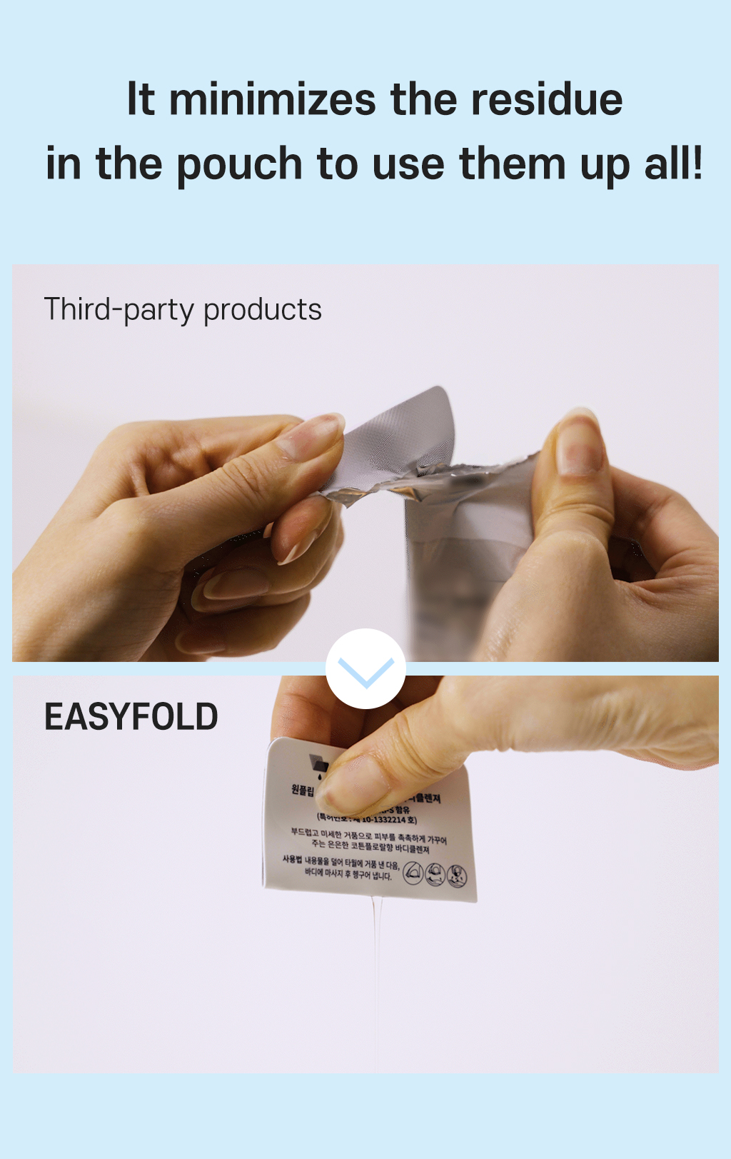 Easyfold is a brand that shows the change from the existing opening pouch to the folding pouch. Make your trip even more enjoyable with clean use, easy to pack anytime, anywhere, and hygienic usage.