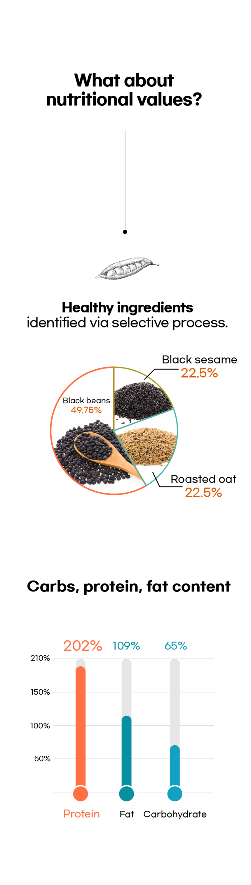 It is a healthy and simple meal alternative made of black sesame, black beans, and roasted oats.