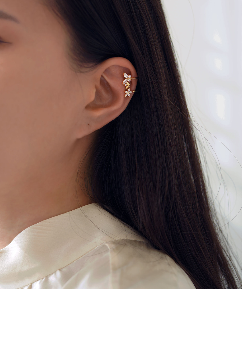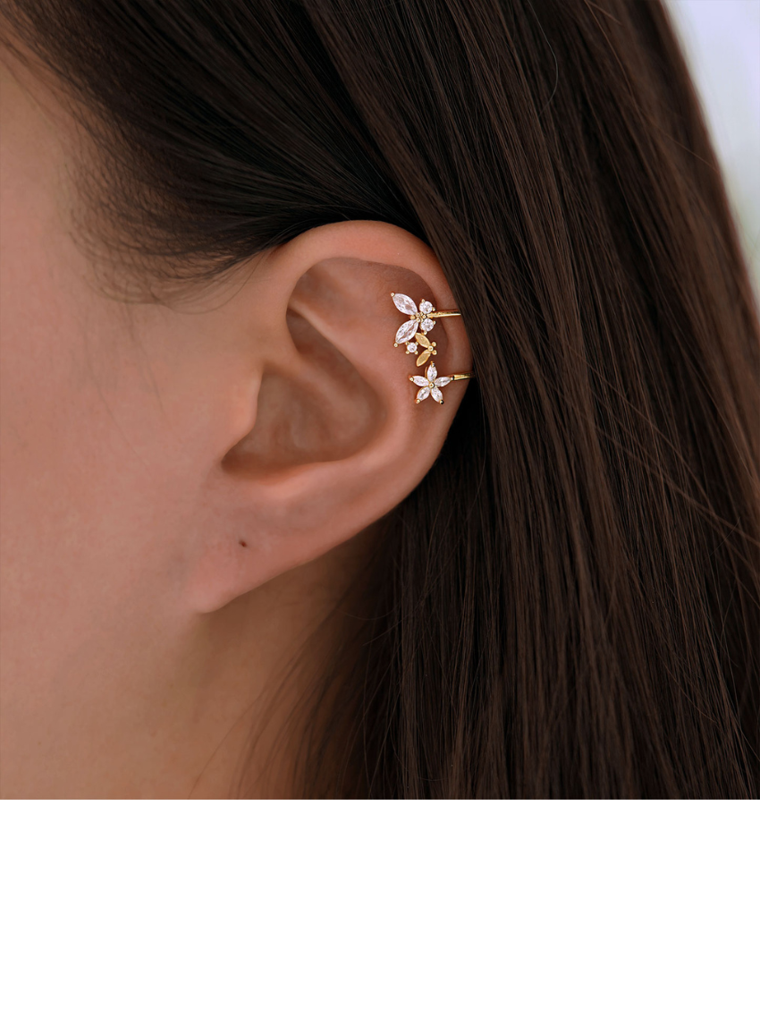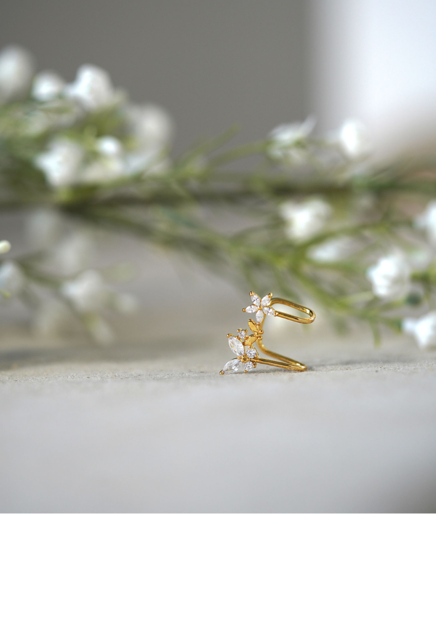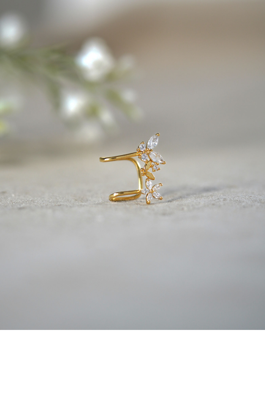 EAR CUFF WITH CUBIC ZIRCONIA IN BUTTERFLY AND FLOWER SHAPE