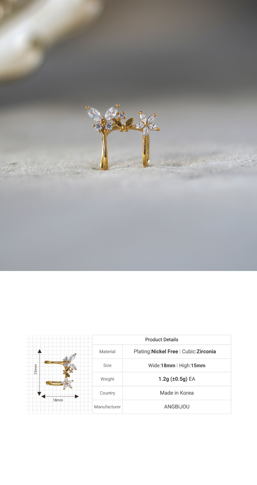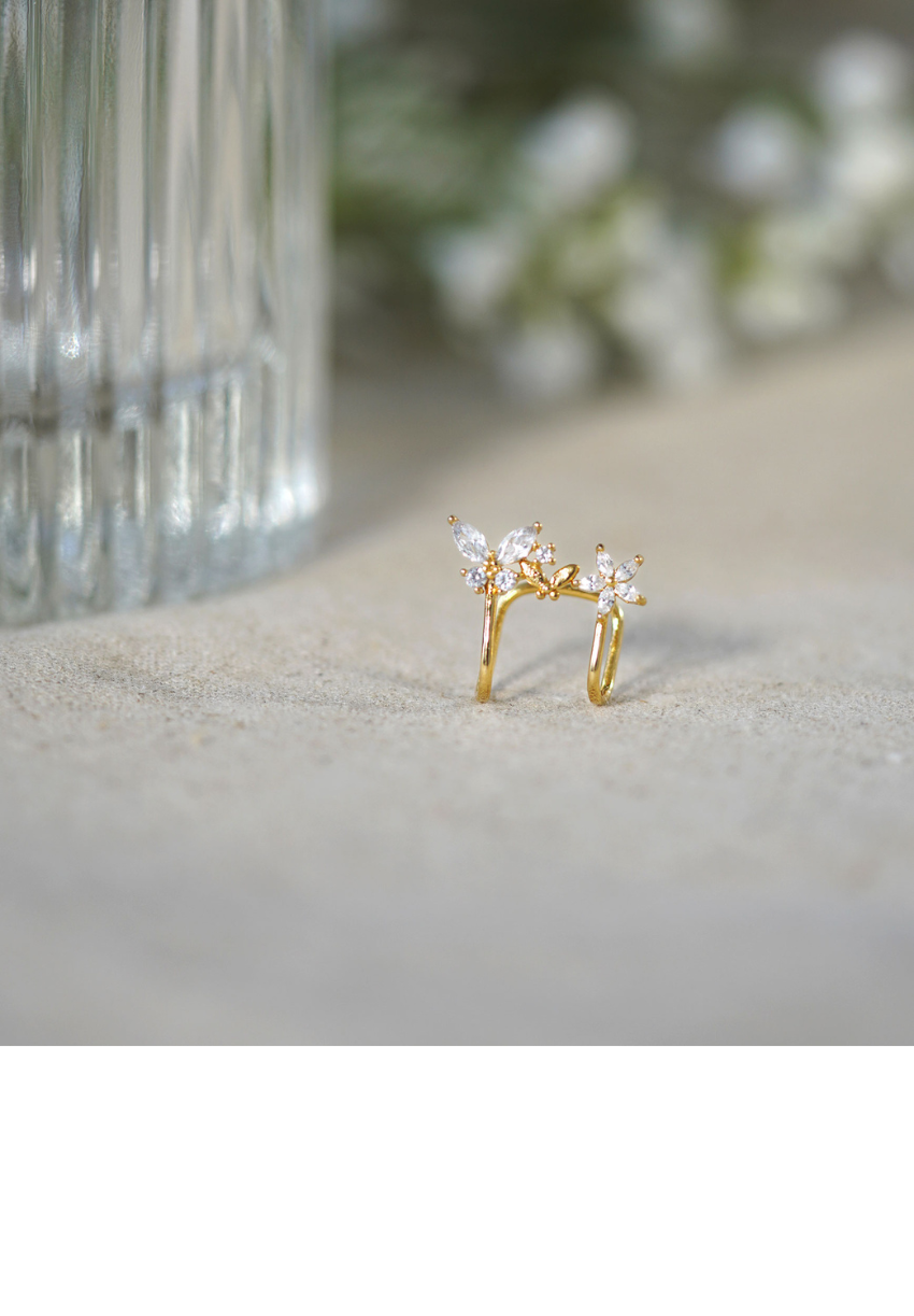 Ear Cuff with Cubic Zirconia in Butterfly and Flower Shape