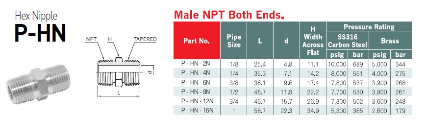 Hex Nipple HJ Global Korea Instrument Pipe Fitting