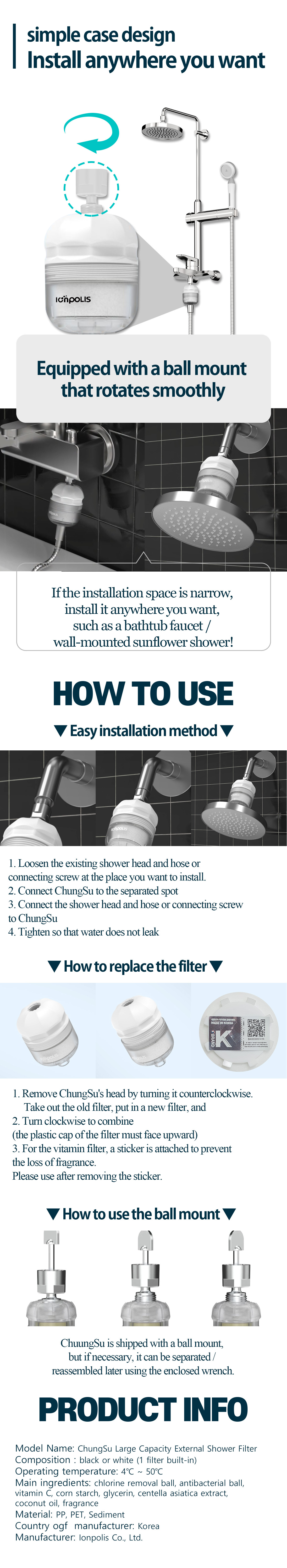 Ionpolis Chung Su Wall Mounted Rain Shower Faucet Vitamin Filter Kit